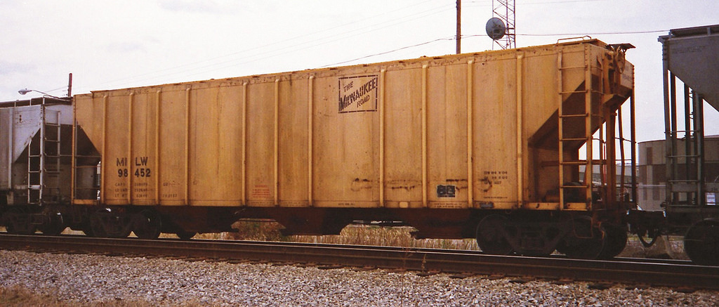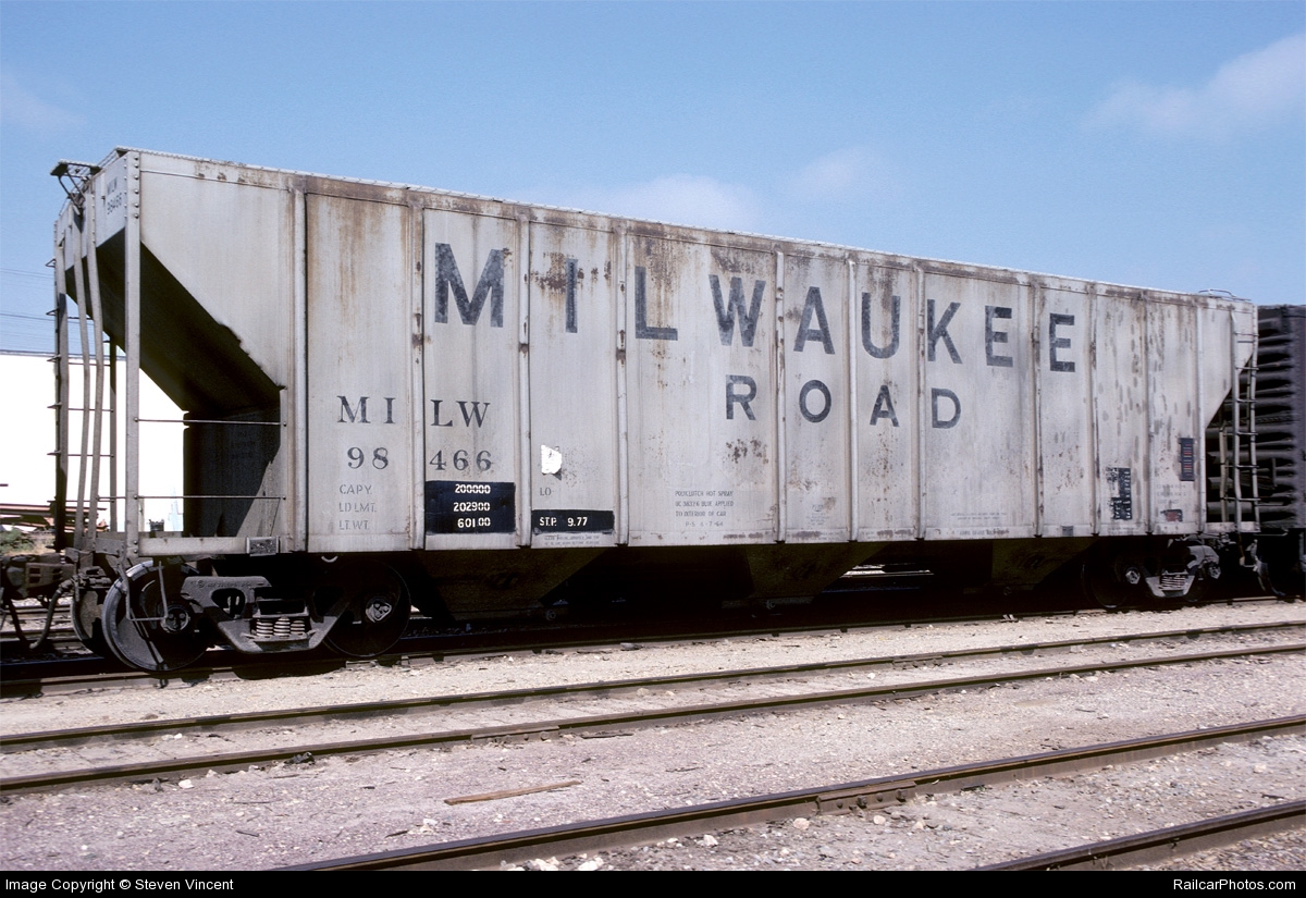 These 100-ton, 3-bay covered hoppers were built by PS (Lot 8897) in 4/1964. They featured 4427 ft3 capacity.