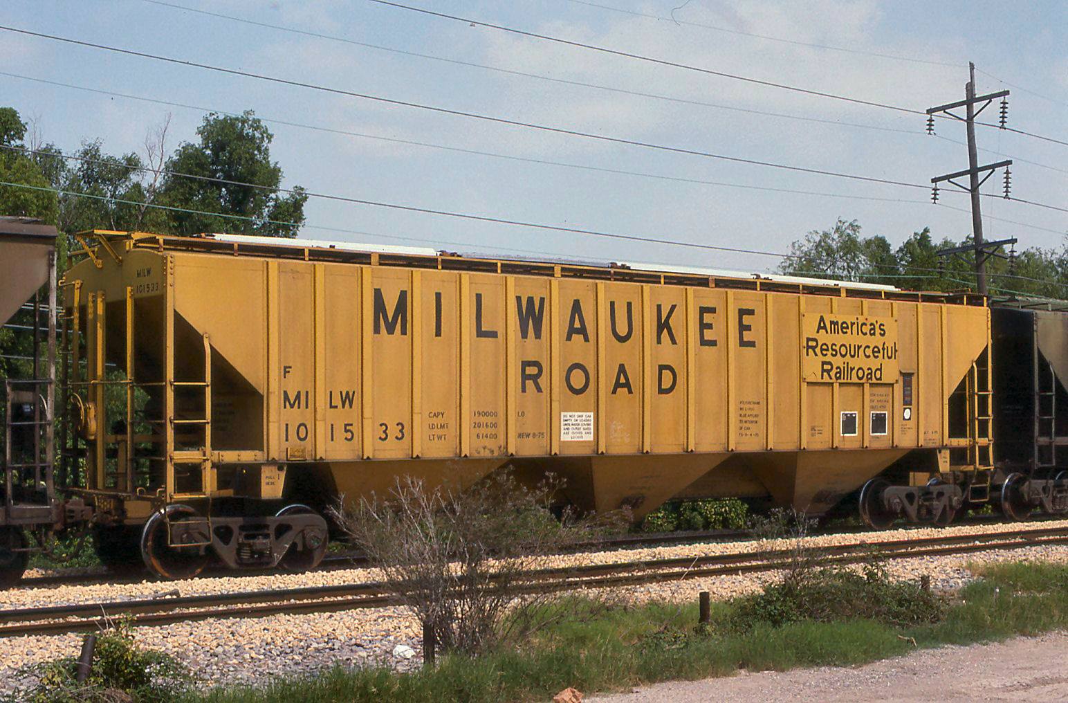 These 100 ton, 3-bay covered hopper cars were built by PS (lot 9787) in 7-8/1975. They featured 4750 ft3 capacity. The F above the reporting marks reportedly indicates that the car was financed.