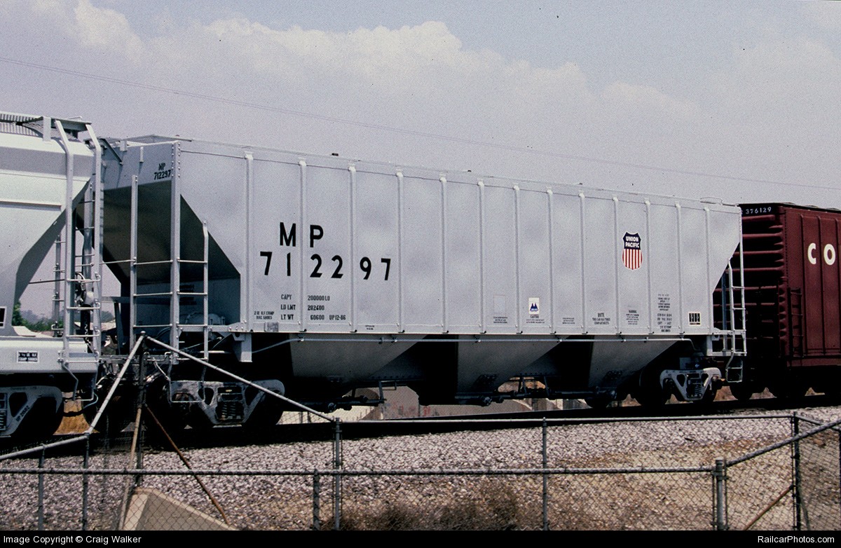 These 3-bay, 100 ton, covered hopper cars were built by PS (lot 9548A) in 7/1971. They featured 4427 ft3 capacity.