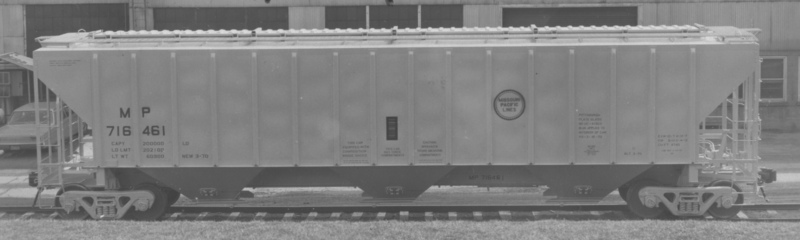 These 3-bay, 100 ton, covered hopper cars were built by PS (Lot 9438) in 3-4/1970. They featured 4740 ft3 capacity.