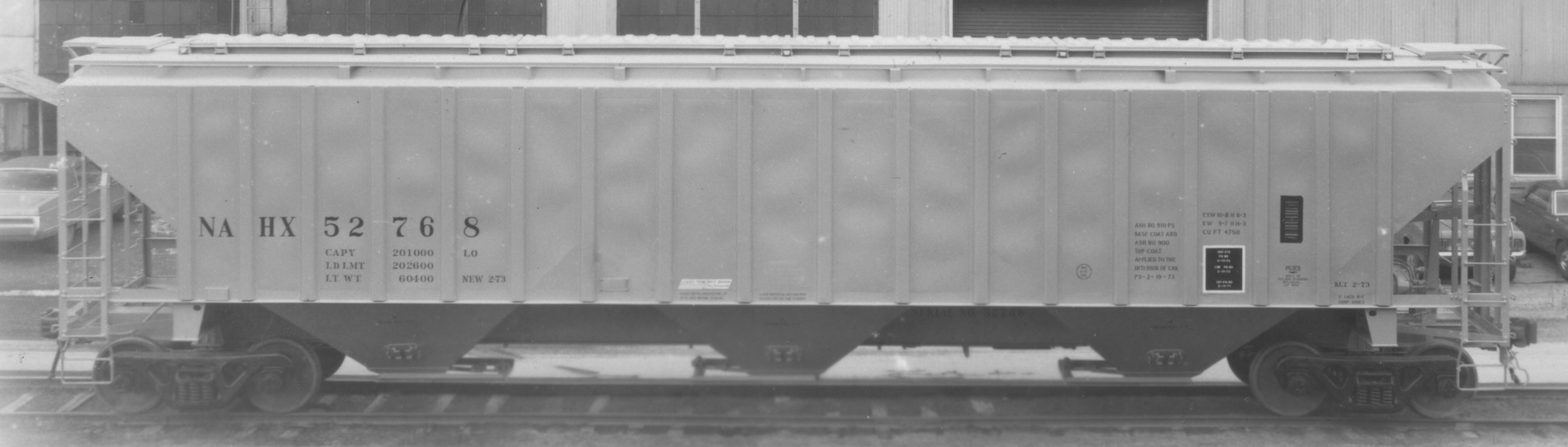 These 100 ton, 3-bay covered hopper cars were built by PS (Lot 9632) in 2/1973. They featured 4750 ft3 capacity.