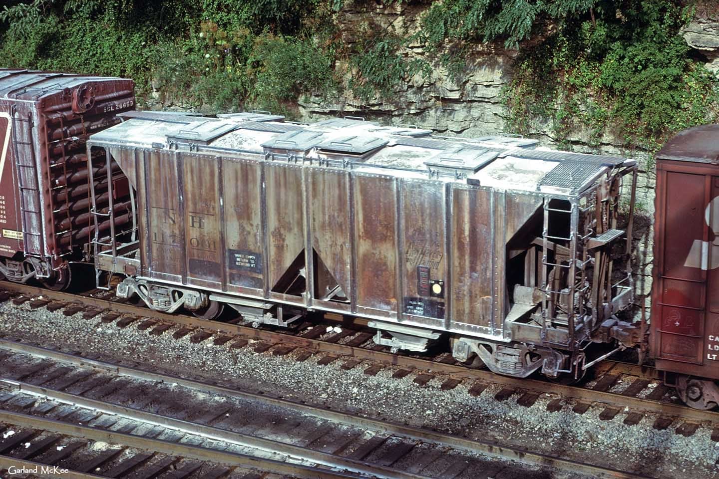 These 70 ton, 2-bay covered hopper cars were built by PS (Lot 5945) in 3-4/1949. They featured 1958 ft3 capacity.