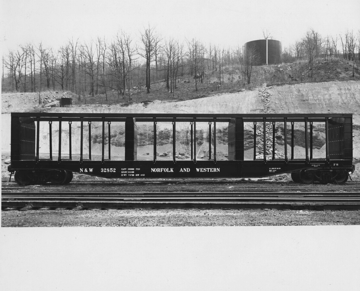 These 55'-10", 90 ton flat cars were built by xxxx in 4/1963? They featured "four fixed bulkheads and side staves, without conventional flooring and are specifically designed for handling logs. Length between bulkheads: center section 17 ft. 6 in., end sections 17 ft. 7 in." They were assigned to class F-8