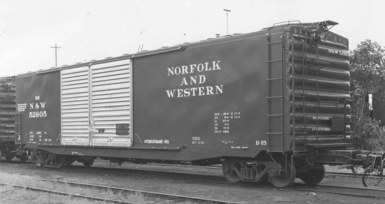 These 48'-5", 70 ton box cars were built by PS (Lot 8725) in 8/1962? They featured double sliding doors for a 15' door opening, Hydroframe-60 cushioned underframes and 4861 ft3 capacity. They were assigned to class B-15