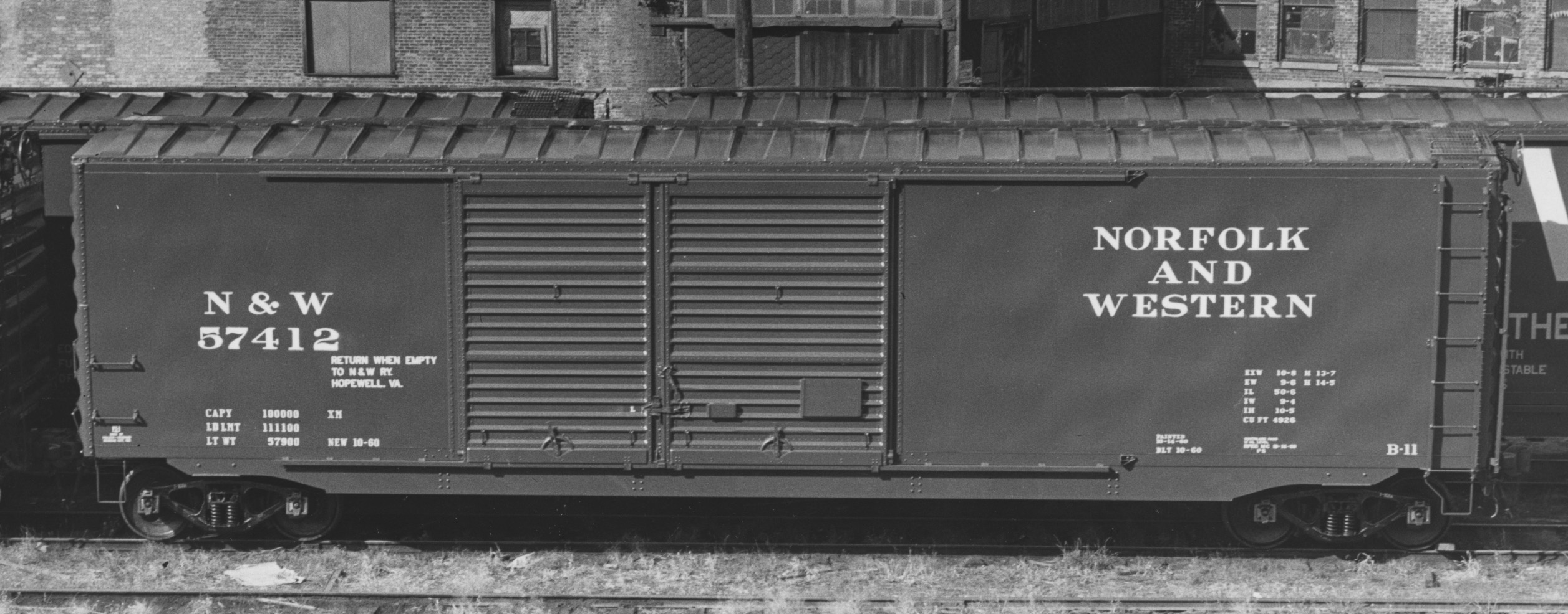 These 50'-6", 50-ton box cars were built by PS (Lot 8576) in 9-10/1960. They featured double (7'+8') Youngstown sliding doors for a 15' opening and 4973 ft3 capacity. They were assigned to class B-11.
