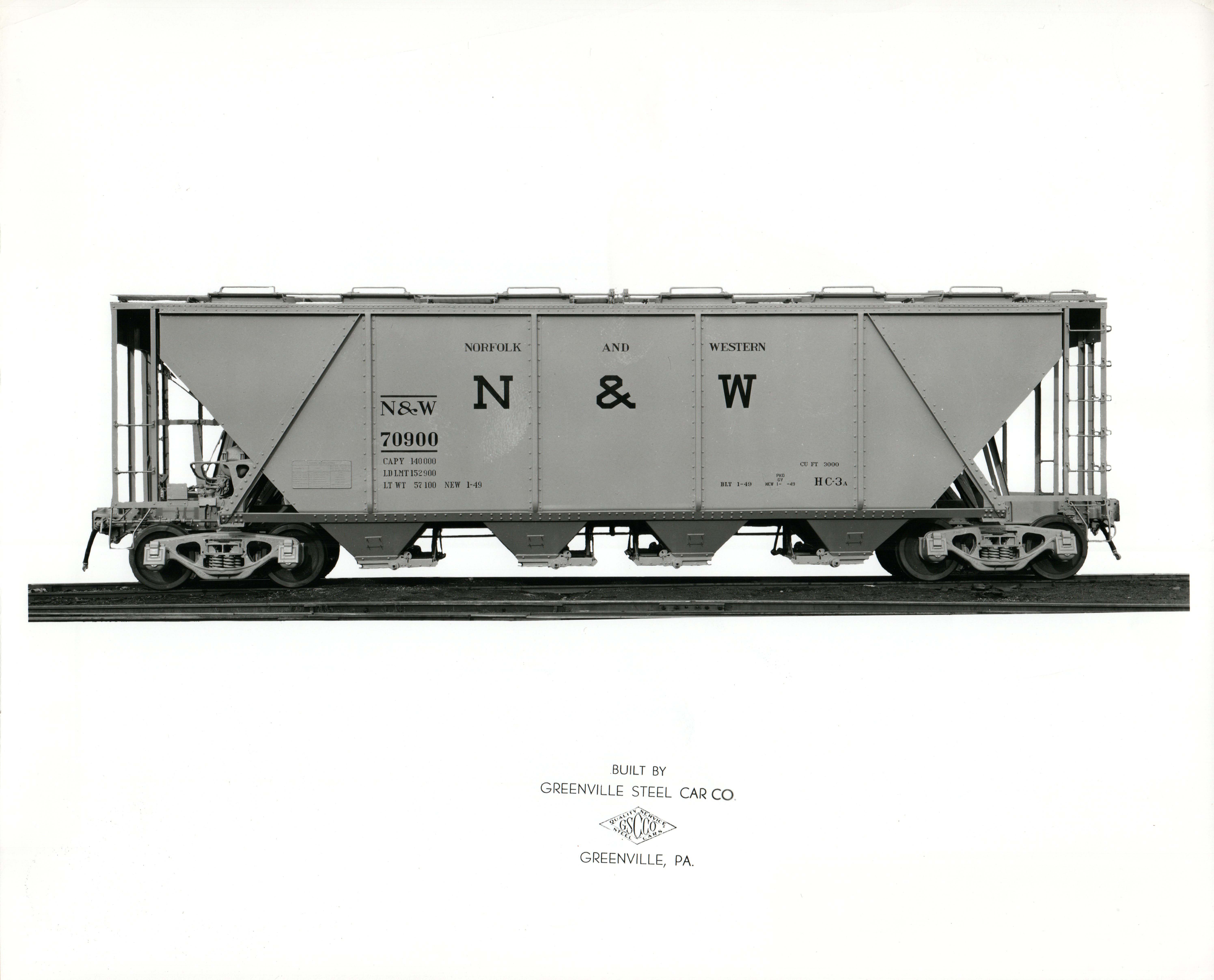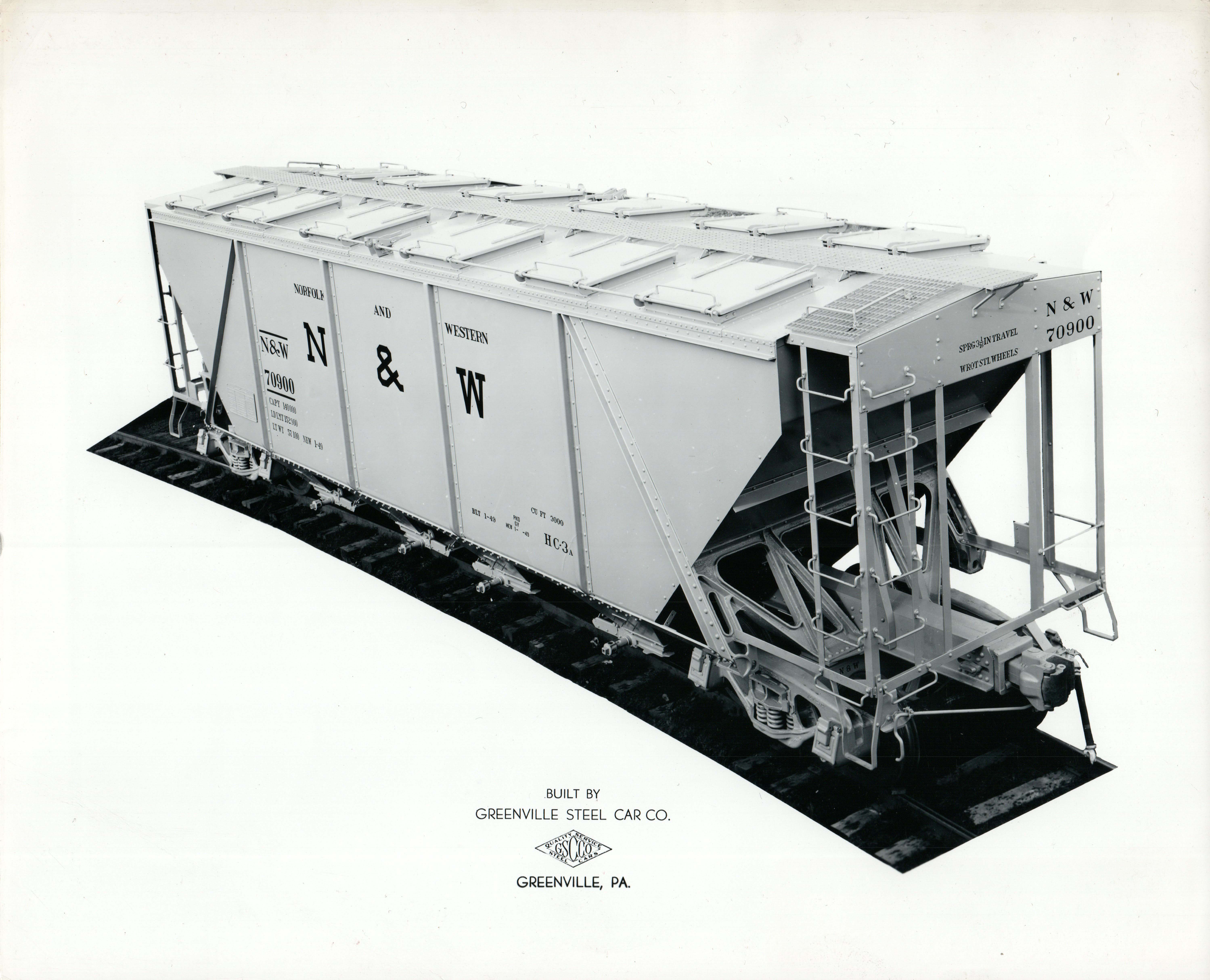 These 4-bay, 70 ton, covered hopper cars were built by Greenville Steel Car Co. (Order 513) in 1-2/1949. They featured 3000 ft3 capacity. They were assigned to class HC-3a.