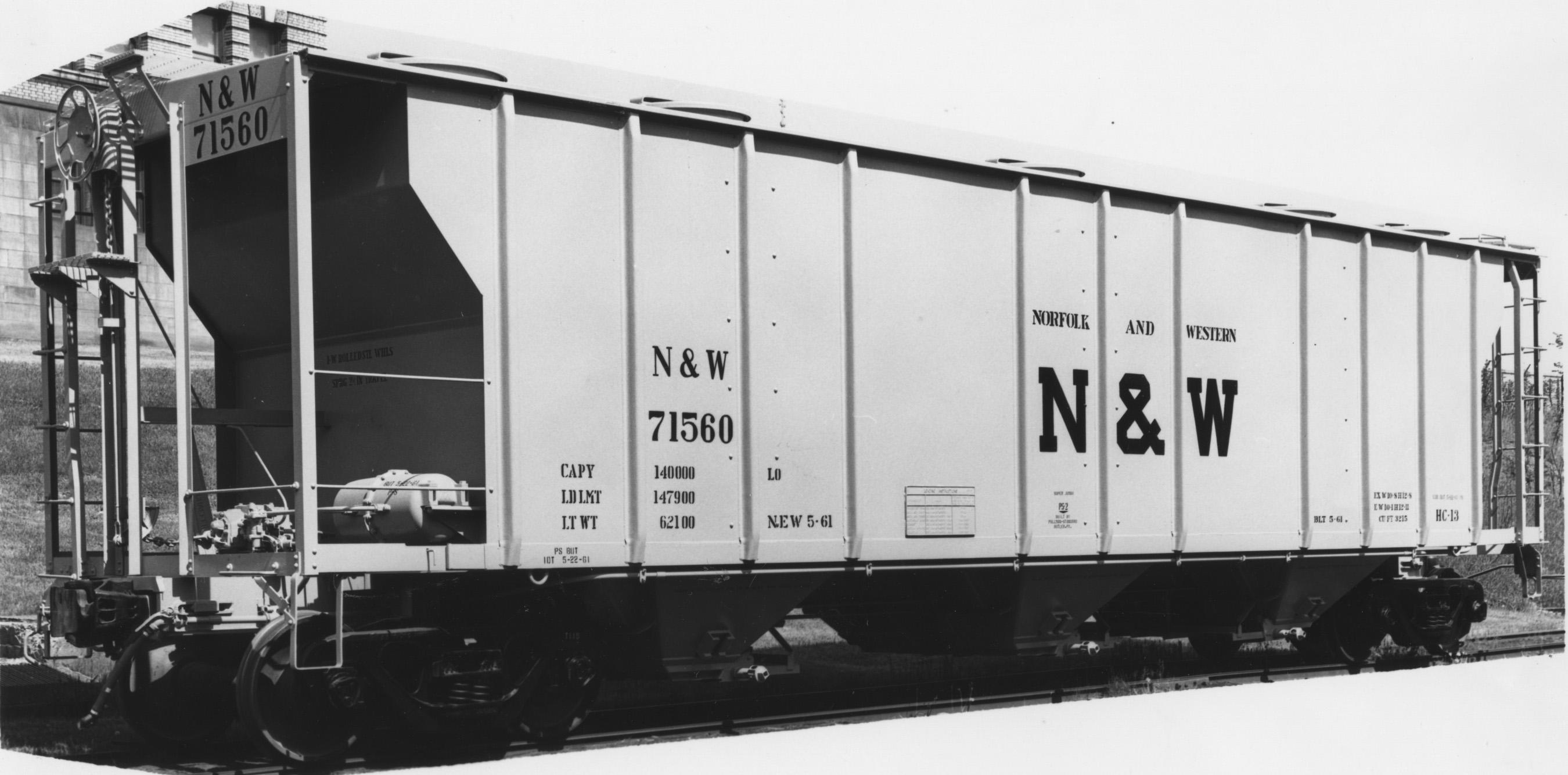 These 3-bay, 70 ton, covered hopper cars were built by PS (Lot 8588A) in 5/1961 as PS-2s. They featured 3215 ft3 capacity. They were assigned to class HC-13.