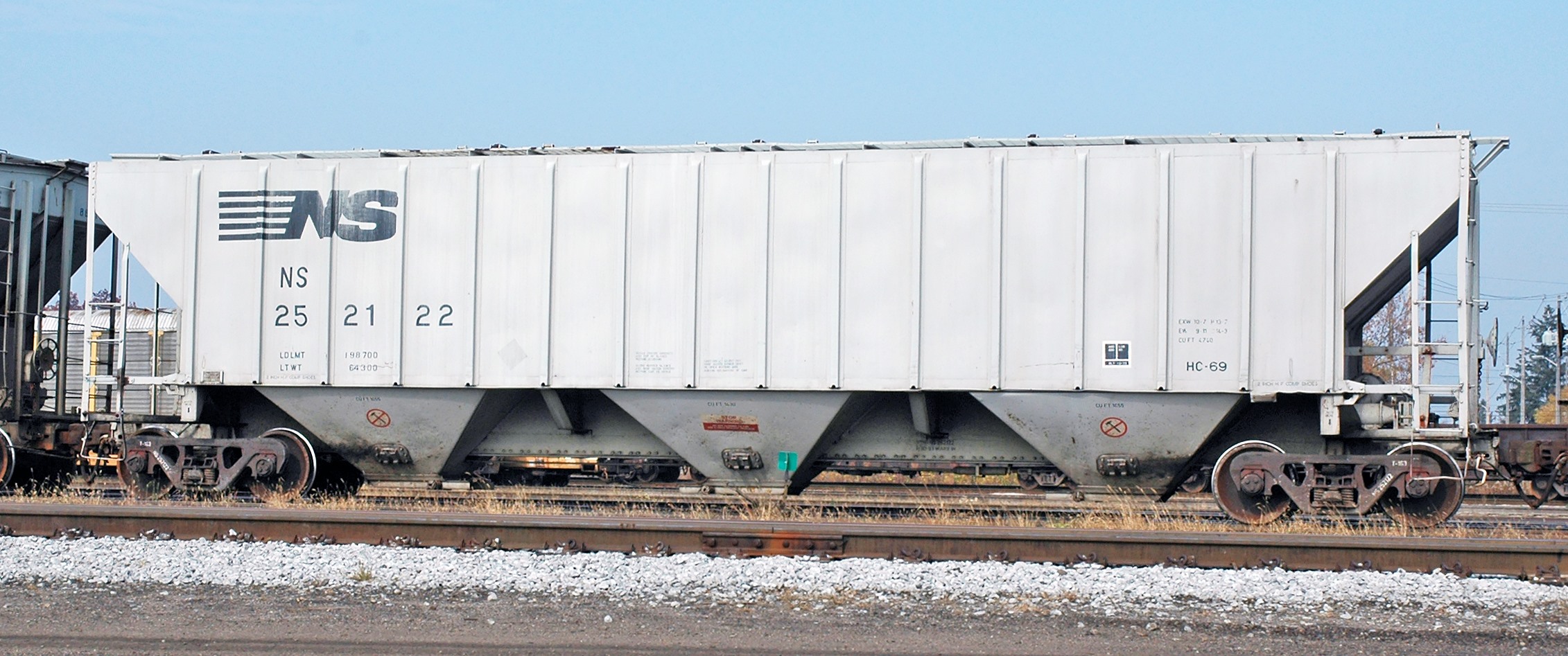 These 3-bay, 100 ton, covered hopper cars were built by PS (lot 9371) in 2-3/1969. They featured 4740 ft3 capacity. They were assigned to class HC-69.