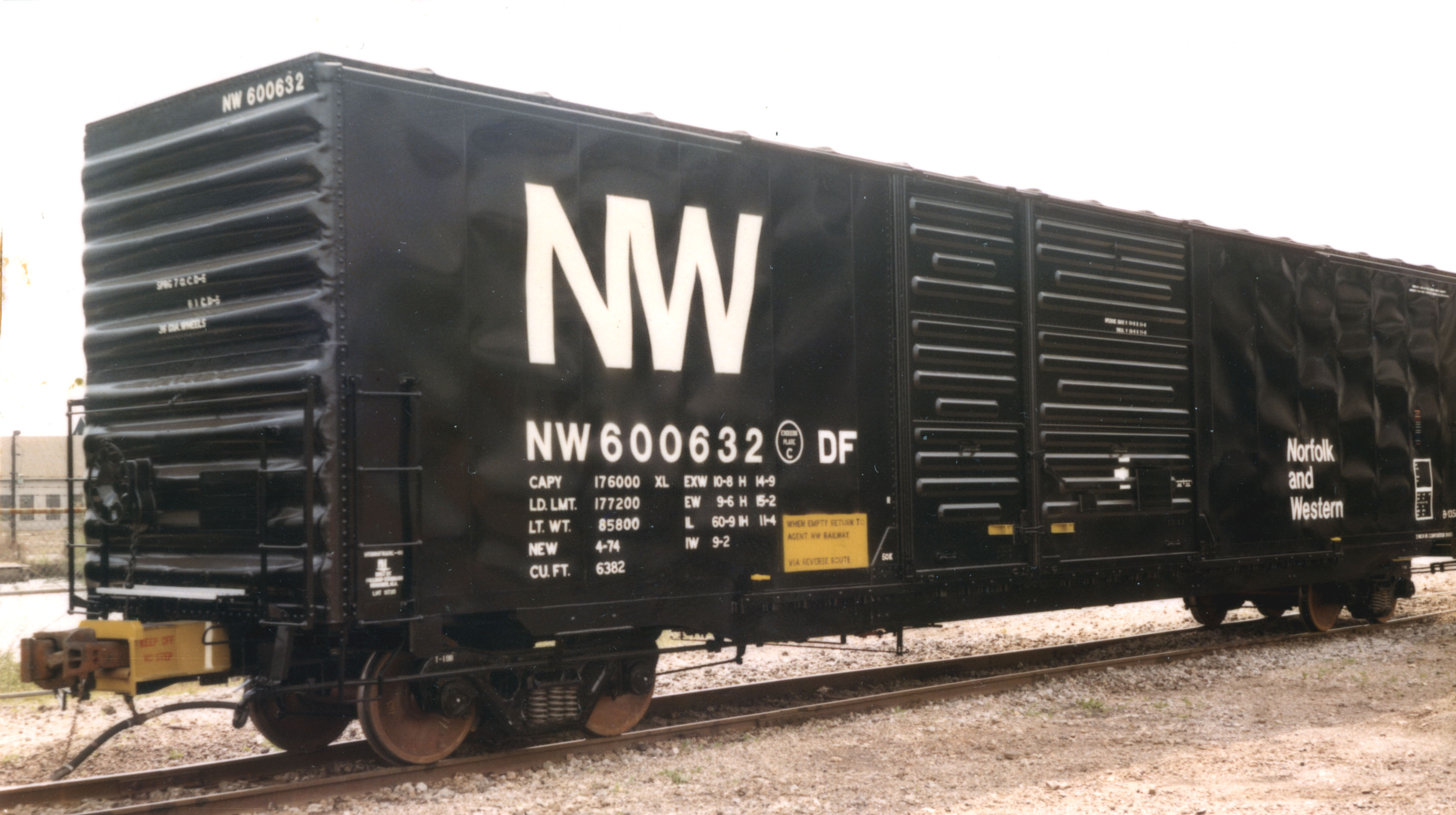 These 60'-9", 85 ton hi-cube box cars were built by PS (Lot 9735) in 4/1974. They featured 6'+10' PS sliding doors, H-40 cushioned underframes and 6358 ft3 capacity. They were assigned to class B-135A.