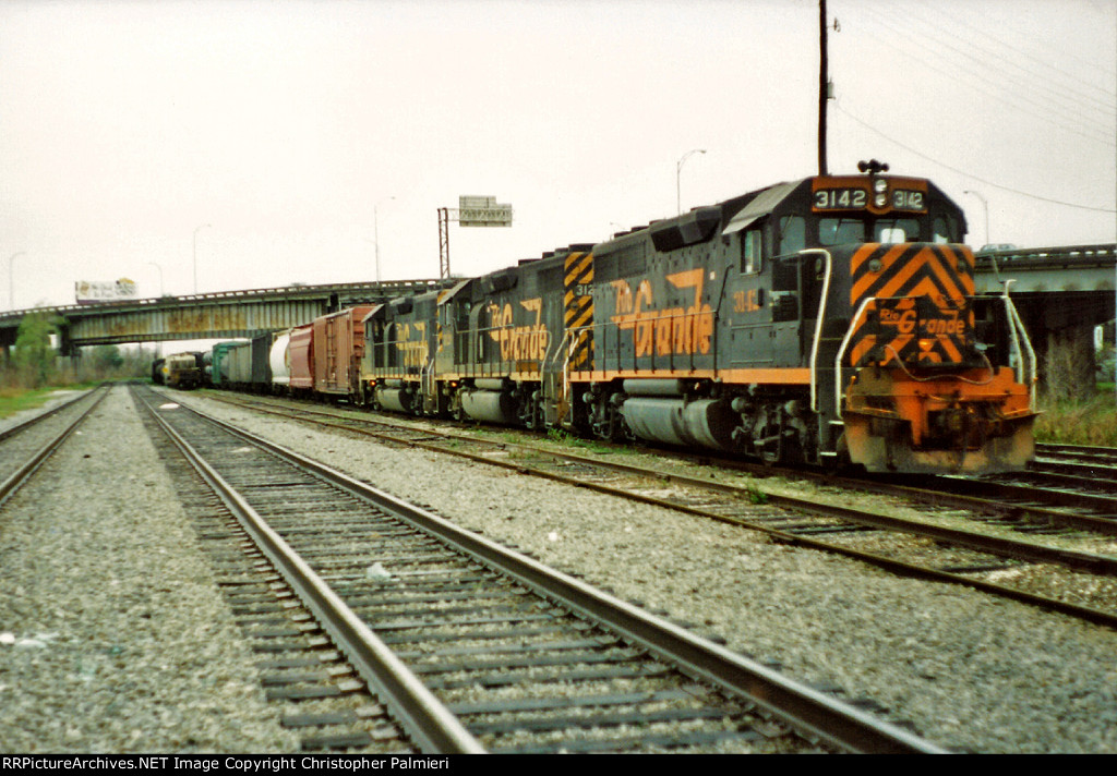 She was acquired outright on 03/16/1984 and given her permanent number D&RGW 3142. She was not equipped with gyralights in service for the PC/CR and they were never retrofitted during her service for the Rio Grande.