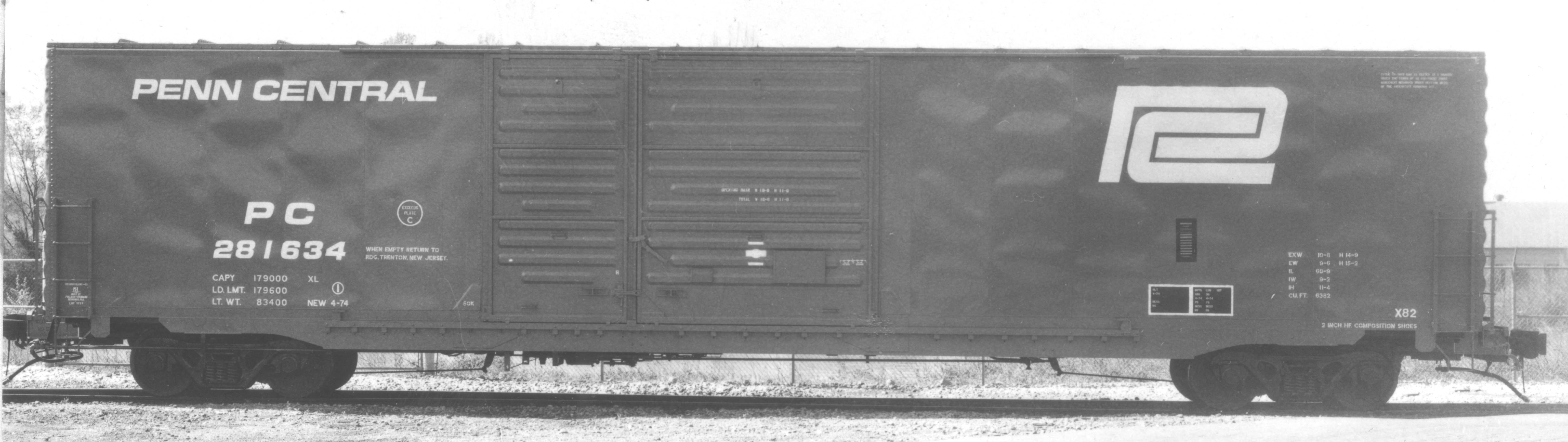 These 60'-9", 85 ton, box cars were built by PS (Lot 9711) in 4/1974. They featured 6'+10' doors, H-40 cushioned underframes and 6382 ft3 capacity. They were assigned to class X82.