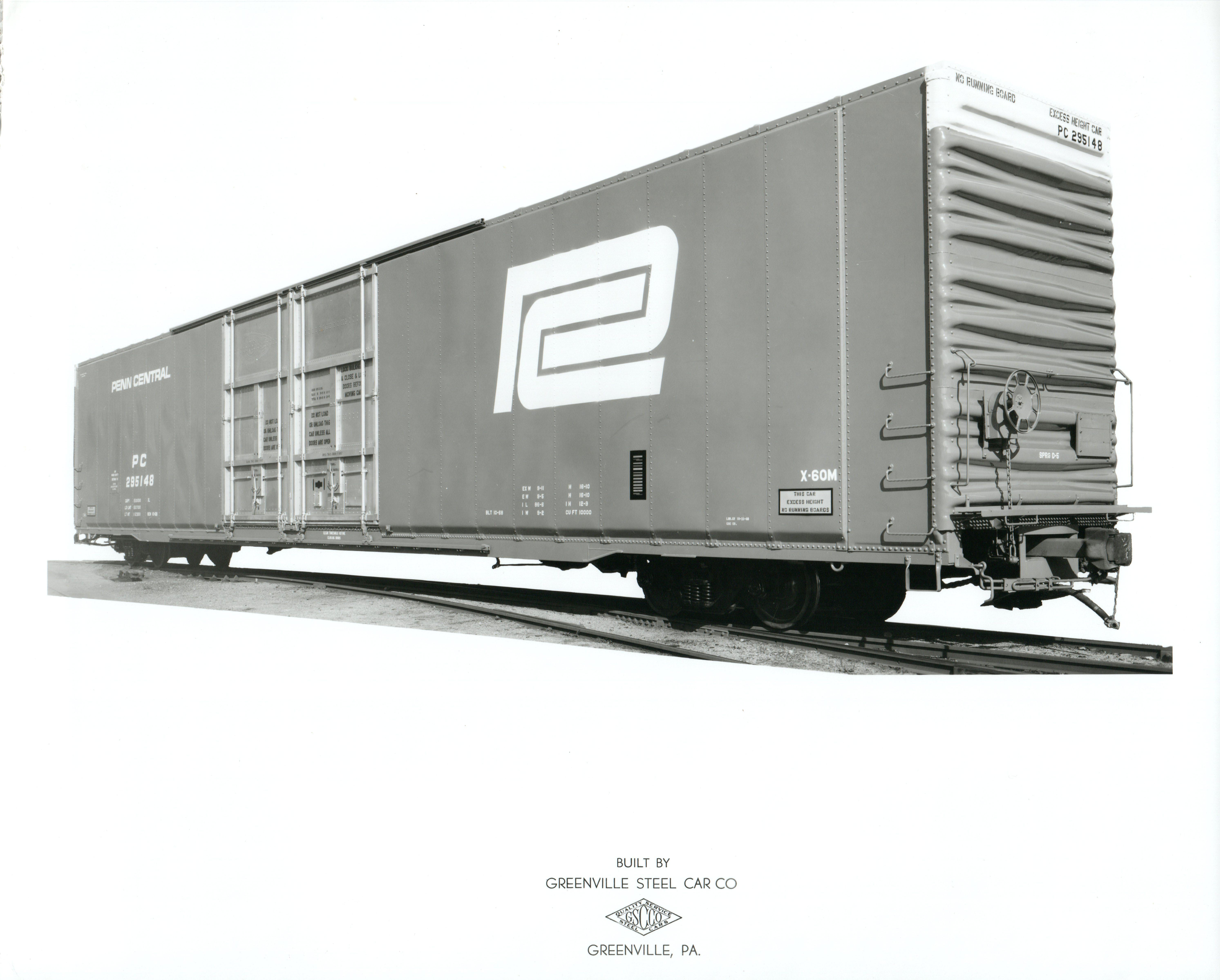 These 86'-6", 75 ton, hi-cube box cars were built by Greenville Steel Car Co. (Order 956) in 10/1968. They featured 10,000 ft3 capacity. They were assigned to class X60m.