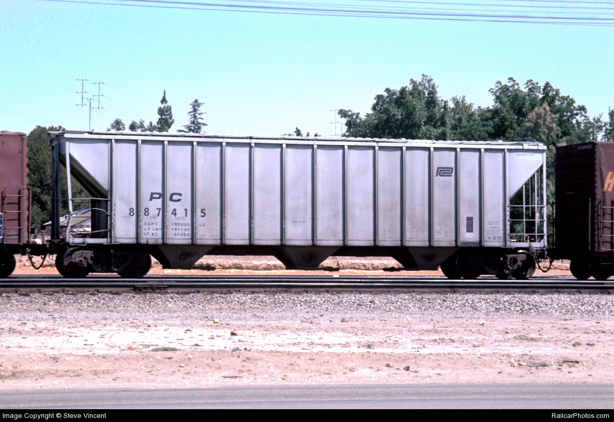 These 3-bay, 100-ton, covered hoppers were built by PC Samuel Rea Shops in 7 & 10/1969 to a GATC Revised Dry-Flo design. They featured 4600 ft3 capacity. They were assigned to class H51C.