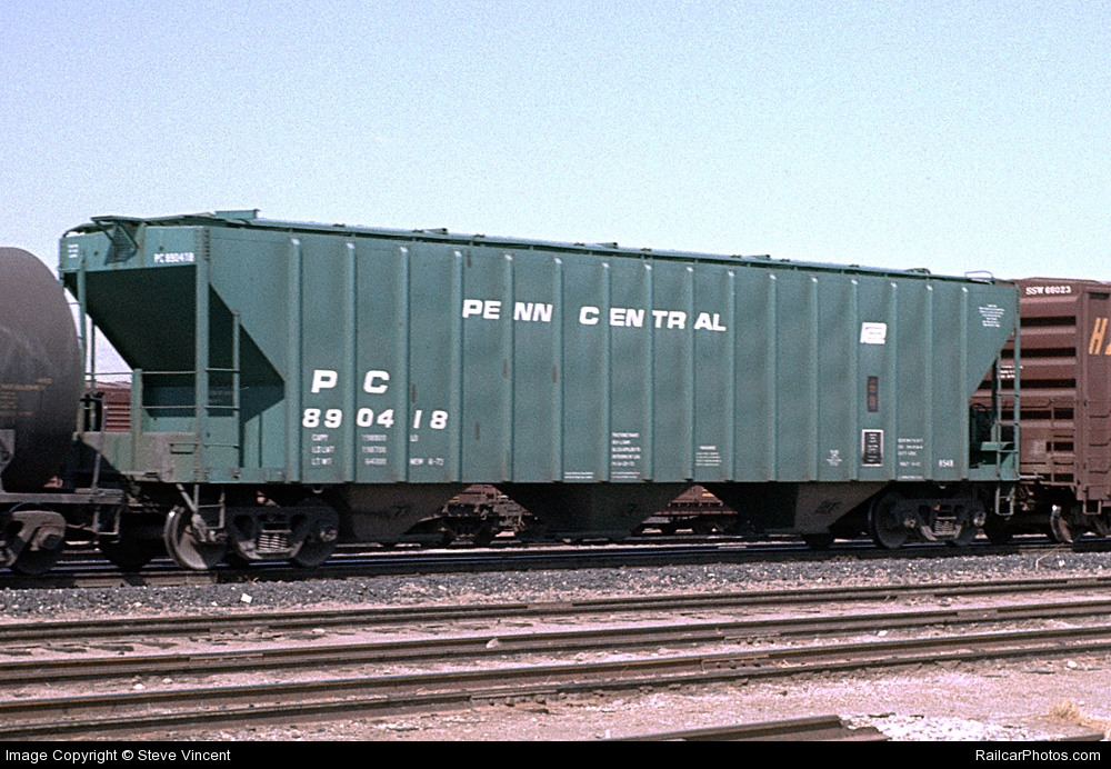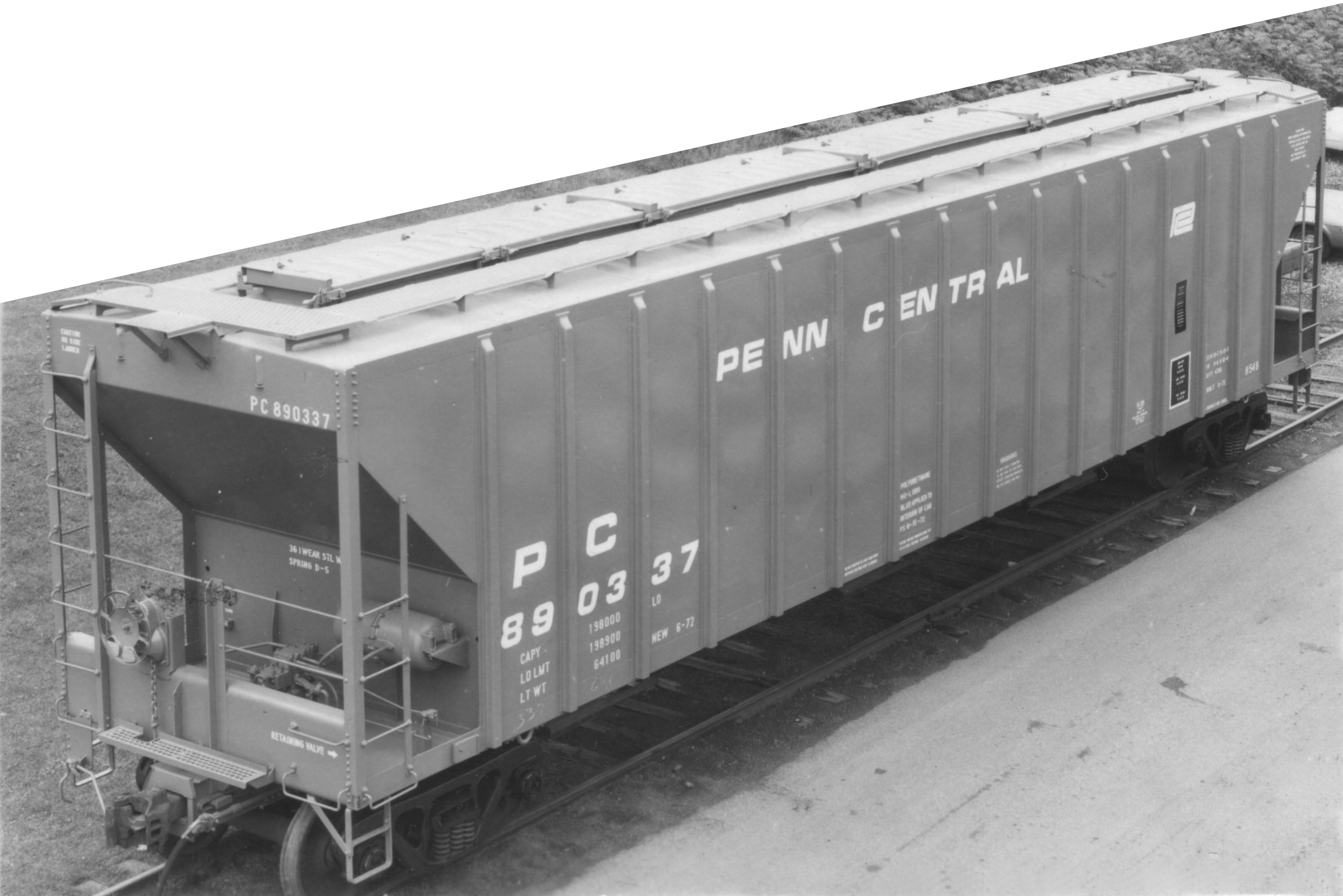 These 3-bay, 100-ton covered hoppers were built by PS (Lot 9593) in 6-7/1972. They featured 4785 ft3 capacity. They were assigned to class H54B.