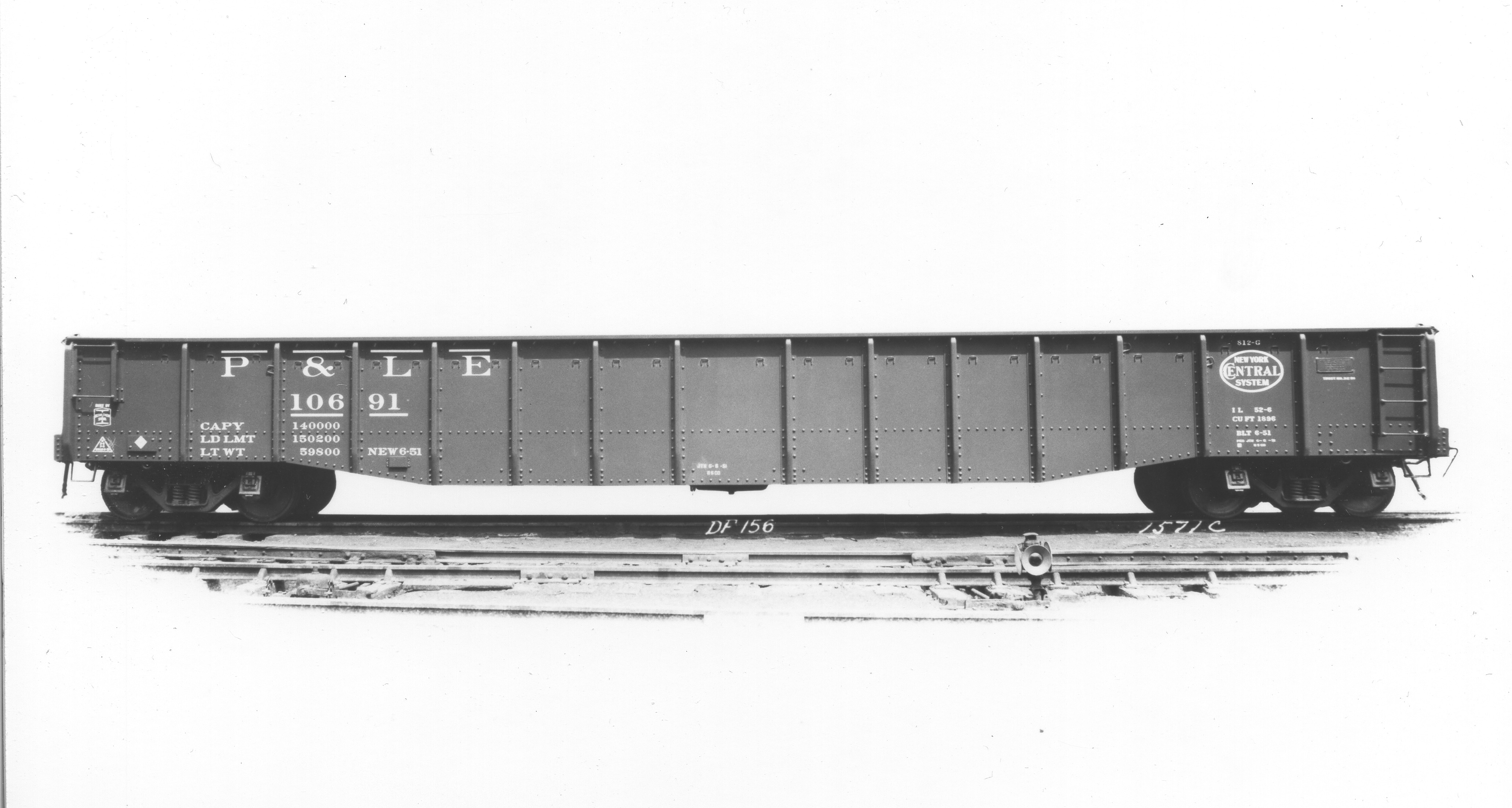 These 52'-6", 70-ton gondolas were built by Bethlehem Steel Corp. (Order DF-156) in 5/1951. They featured drop ends, steel floors and 1896 ft3 capacity. They were assigned to class 812-G.