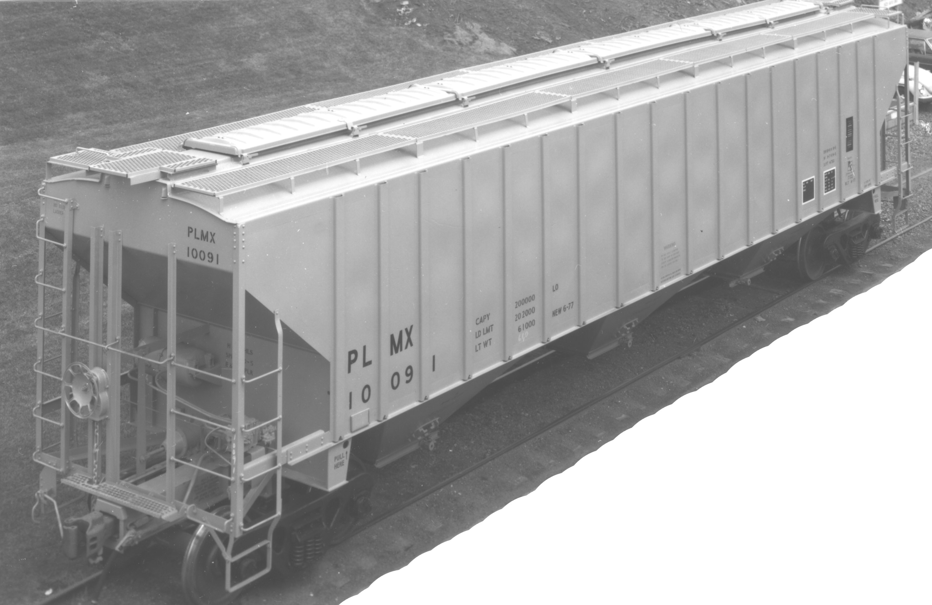 These 3-bay, 100-ton, covered hoppers were built by PS (Lot 9944B) in 6/1977. They featured 4750 ft3 capacity.