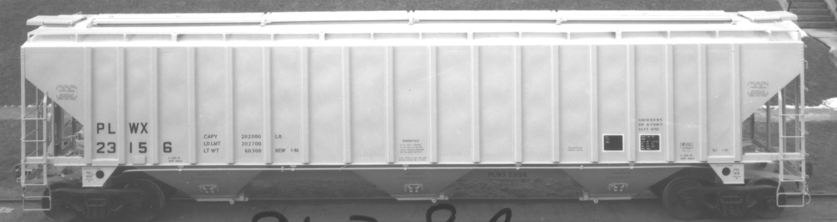 These 3-bay, 100 ton, covered hopper cars were built by PS (Lot 1112) in 1-2/1981. They featured 4750 ft3 capacity.