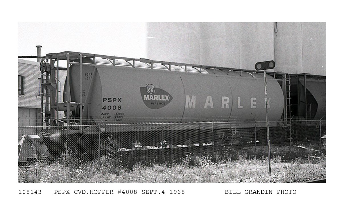 These 3-bay, 6-outlet, 70 ton cylindrical covered hopper cars were built by ACFI in x/196x as standard-cube Center Flow CF3960 cars. They featured 3960 ft3 capacity.