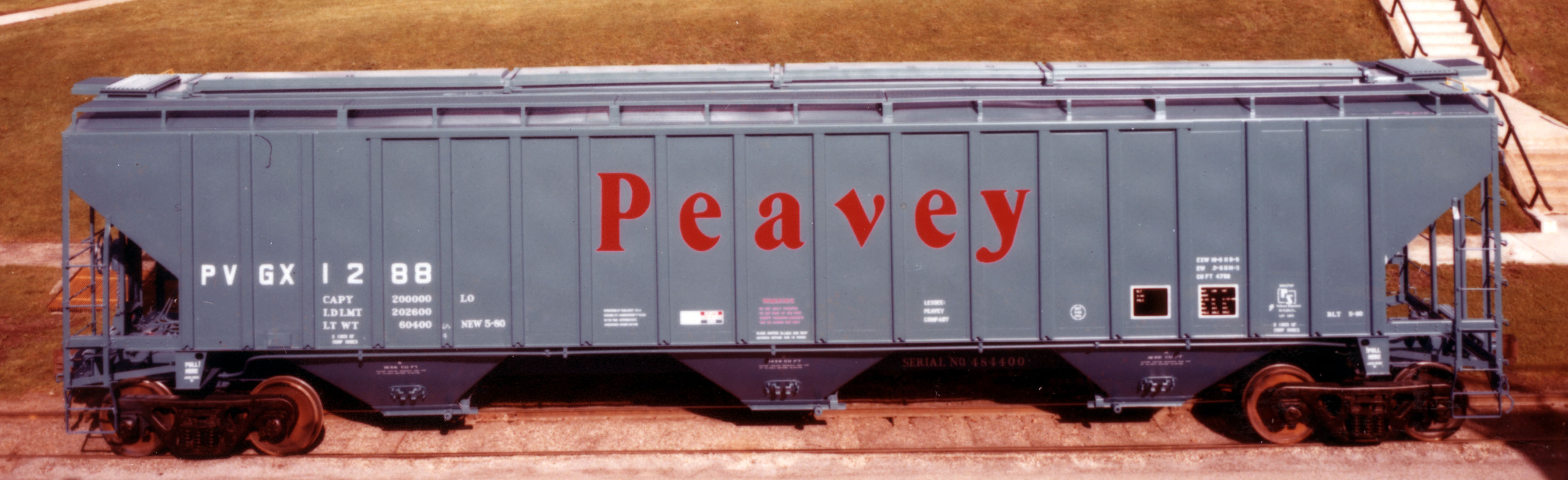 These 100 ton, 3-bay covered hopper cars were built by PS (Lot 1072) in 5/1980. They featured 4750 ft3 capacity.