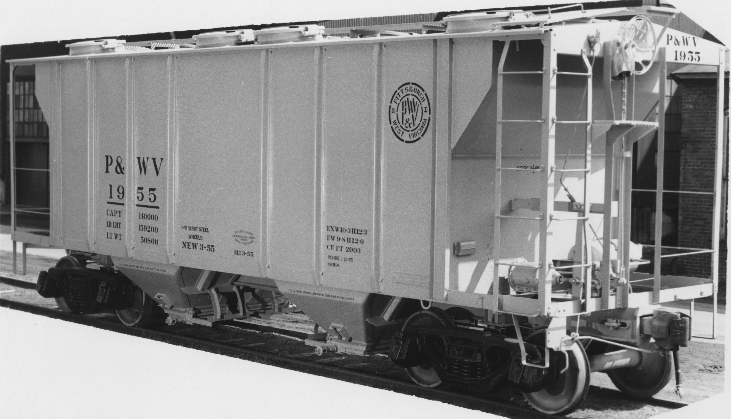 These 2-bay, 70 ton, covered hopper cars were built by PS (Lot 8237) in 3/1955 as PS-2s. They featured 2003 ft3 capacity..