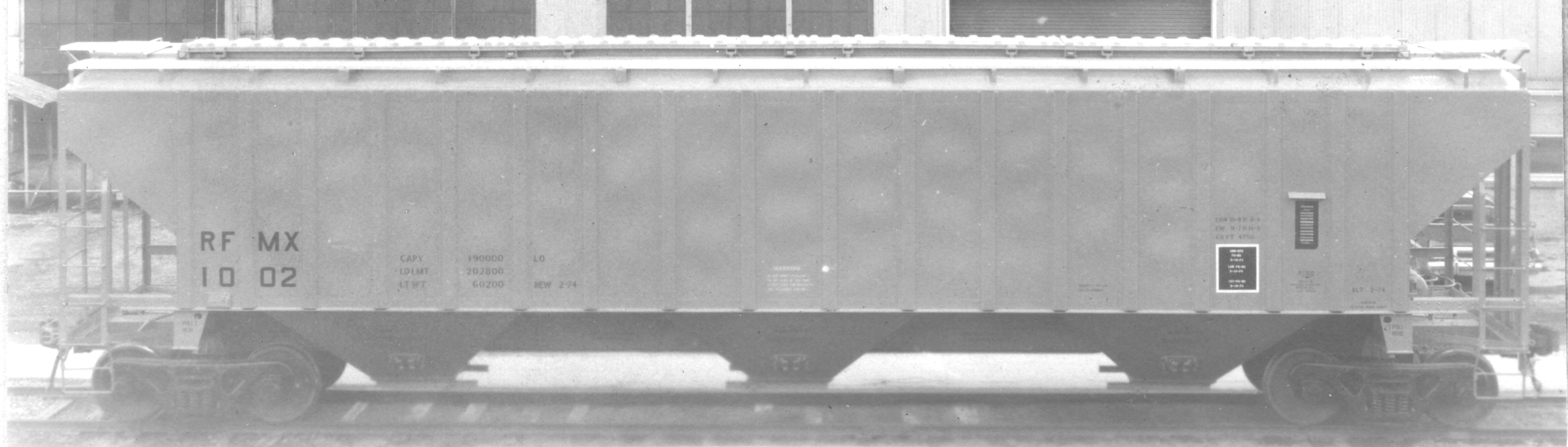 These 100 ton, 3-bay covered hopper cars were built by PS (Lot 9703A) in 2/1974. They featured 4750 ft3 capacity.