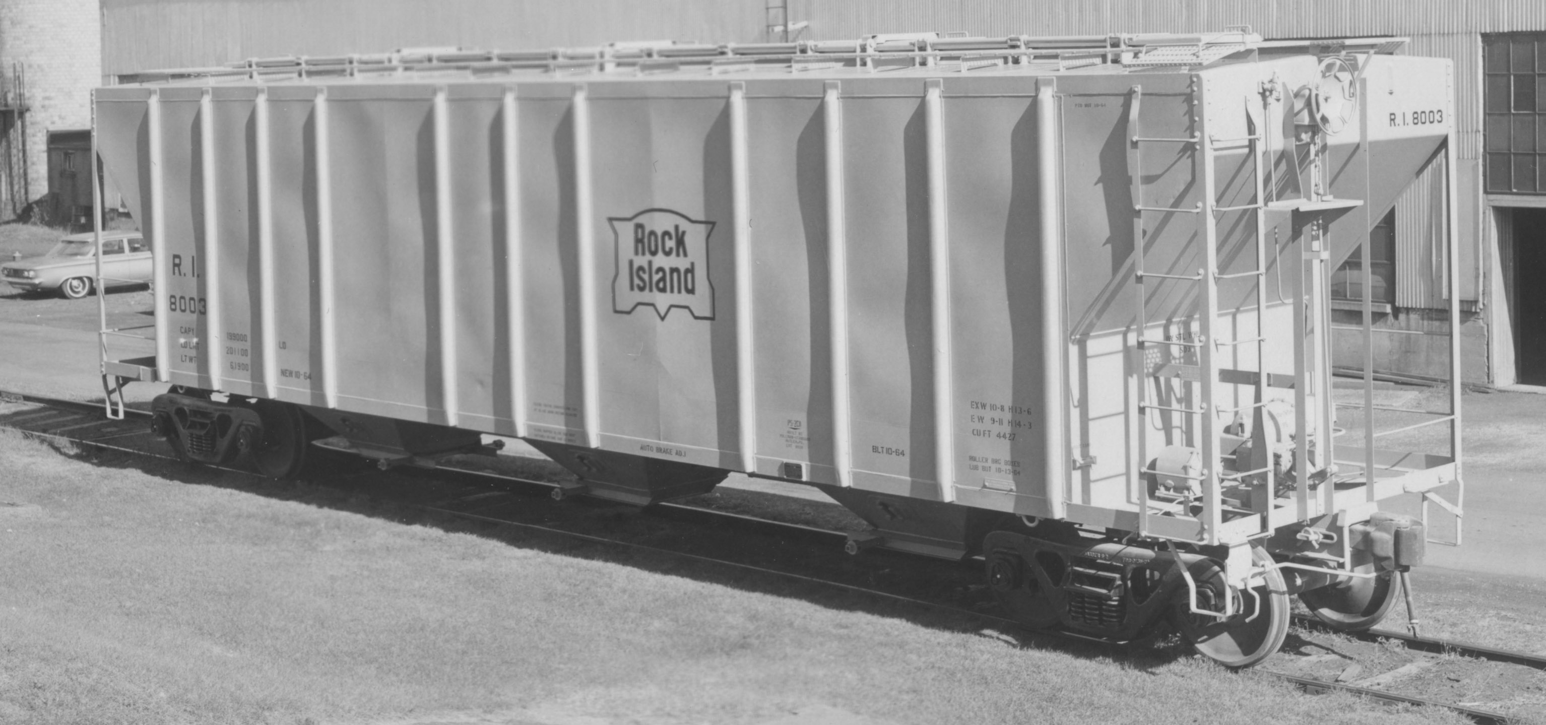 These 3-bay, 95-ton covered hoppers were built by PS (Lot 8938) in 10/1964. They featured 4427 ft3 capacity.