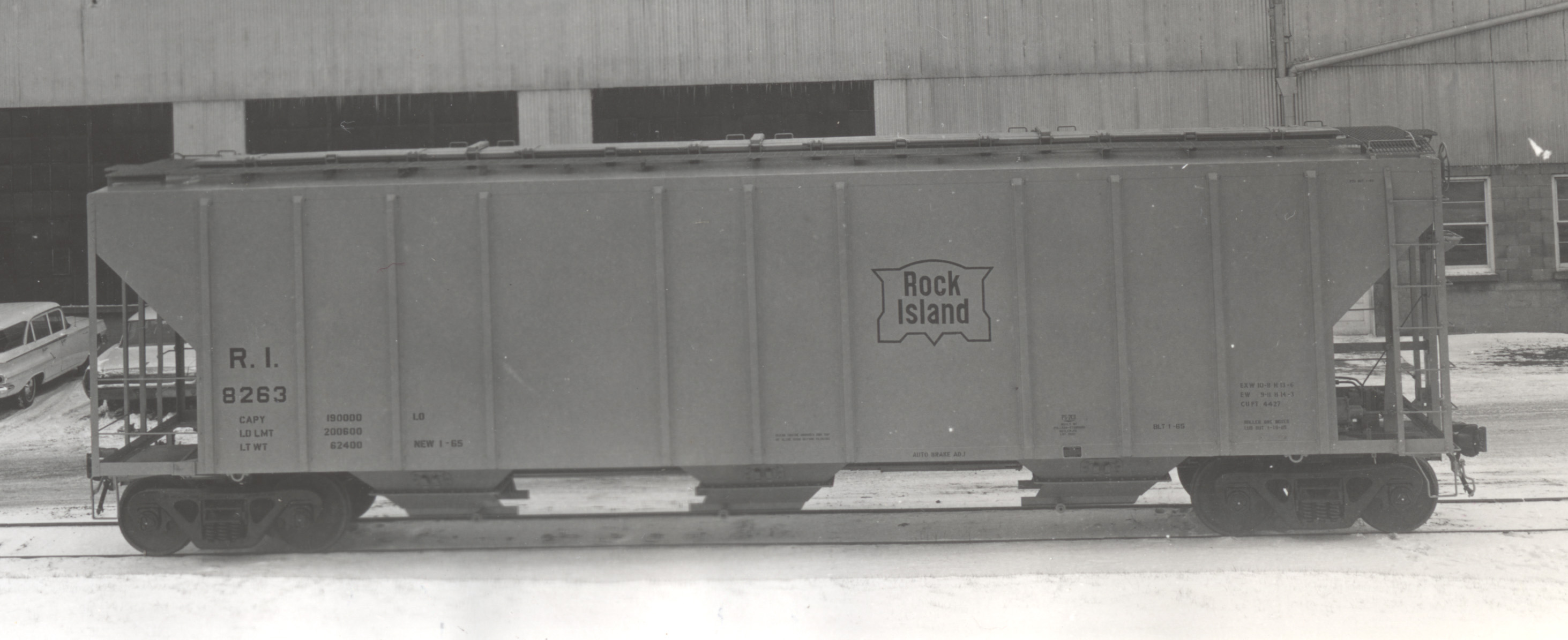 These 3-bay, 95-ton covered hopper cars were built by PS (Lot 9001) in 1/1965. They featured 4427 ft3 capacity.