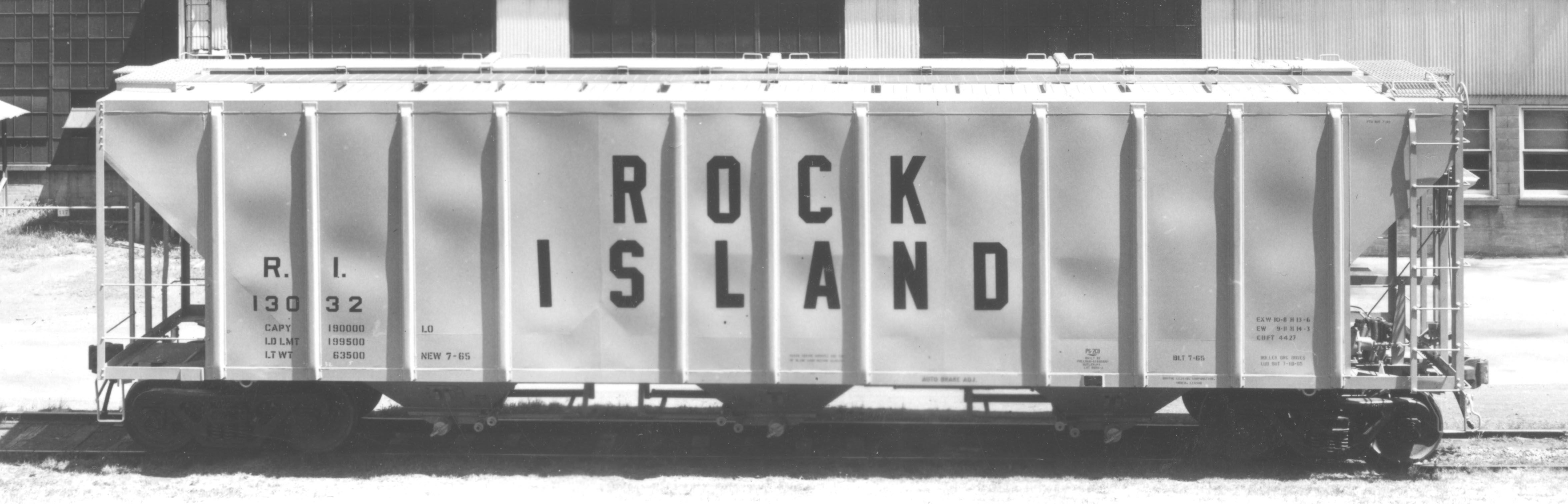 These 3-bay covered hopper cars were built by PS (Lot 8956A) in 7/1965. They featured 4427 ft3 capacity.
