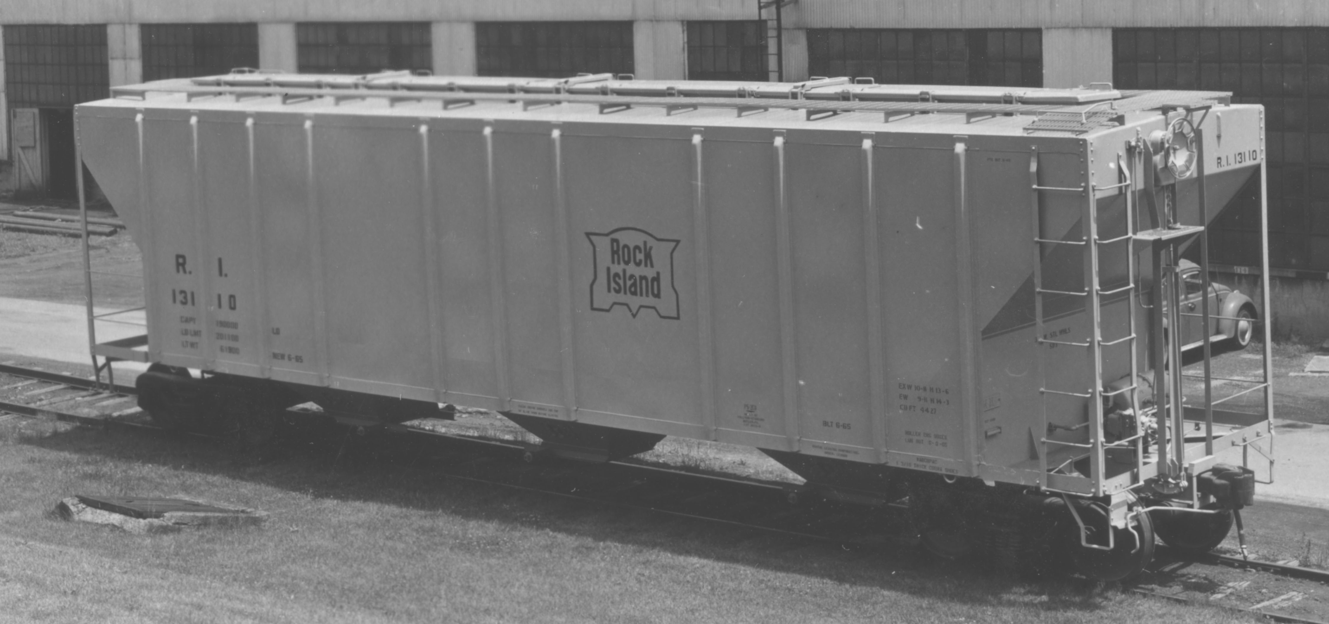 These 3-bay covered hopper cars were built by PS (Lot 8955B) in 6/1965. They featured 4427 ft3 capacity.