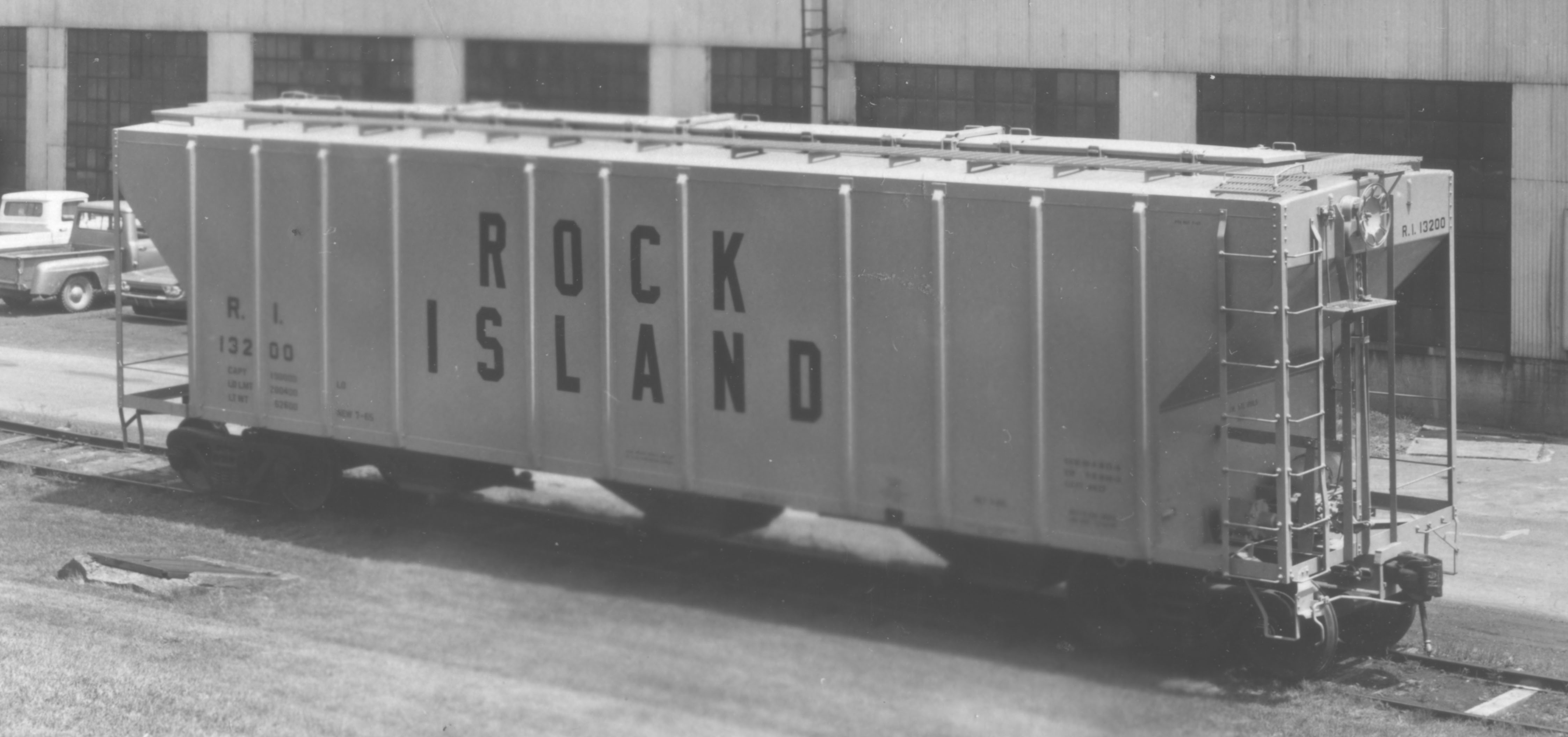 These 3-bay covered hopper cars were built by PS (Lot 8955A) in 7/1965. They featured 4427 ft3 capacity.