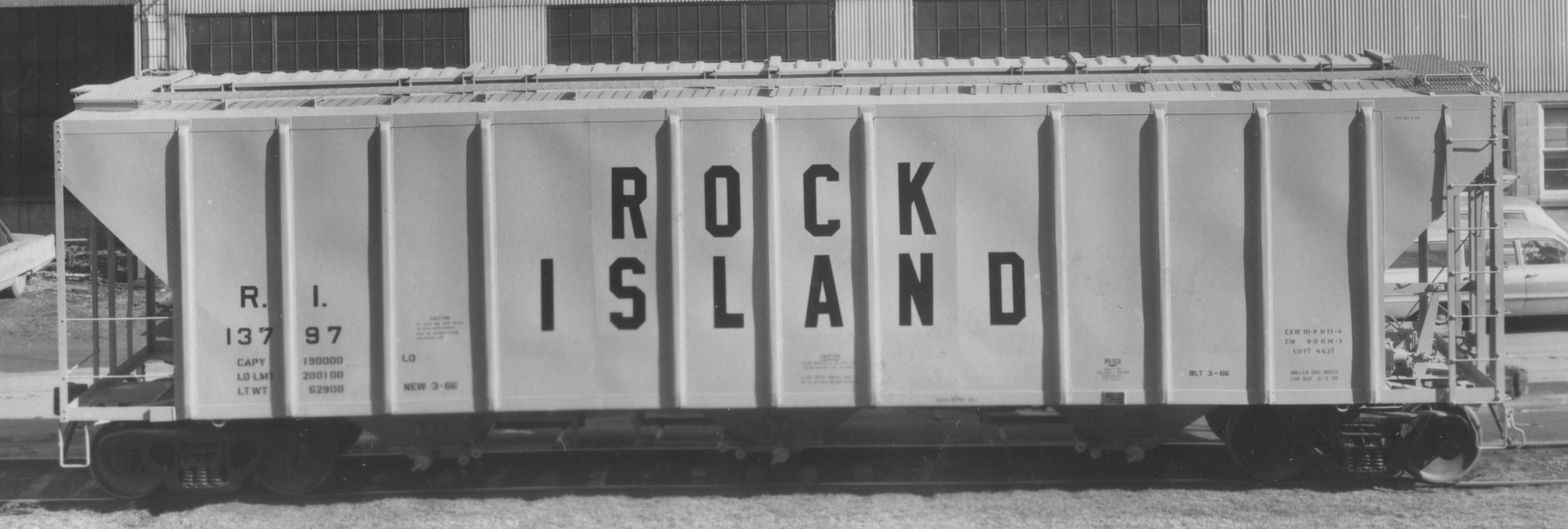 These 3-bay covered hopper cars were built by PS (Lot 9122A) in 3/1966. They featured 4427 ft3 capacity.
