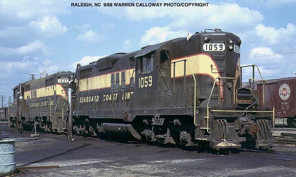 This loco was built in 8-9/1960 with EMD serial number 26117. She was built as a freight engine. She featured a sealed beam headlight in her front and rear ends. As with all SAL GP18s, she did feature dynamic brakes.