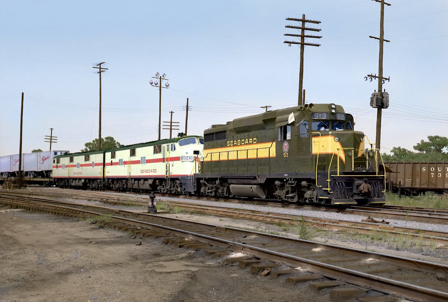 This loco was built in 11/1962-1/1963 with EMD serial number 27941 and frame number 7636-4. She was built as a freight engine. She featured a sealed beam headlight in her front and rear ends. She was equipped with dynamic brakes.