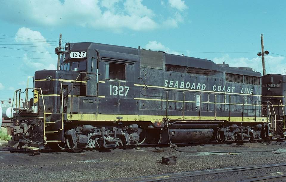 This loco was built in 11/1962-1/1963 with EMD serial number 27946. She was built as a freight engine. She featured a sealed beam headlight in her front and rear ends. She was equipped with dynamic brakes.