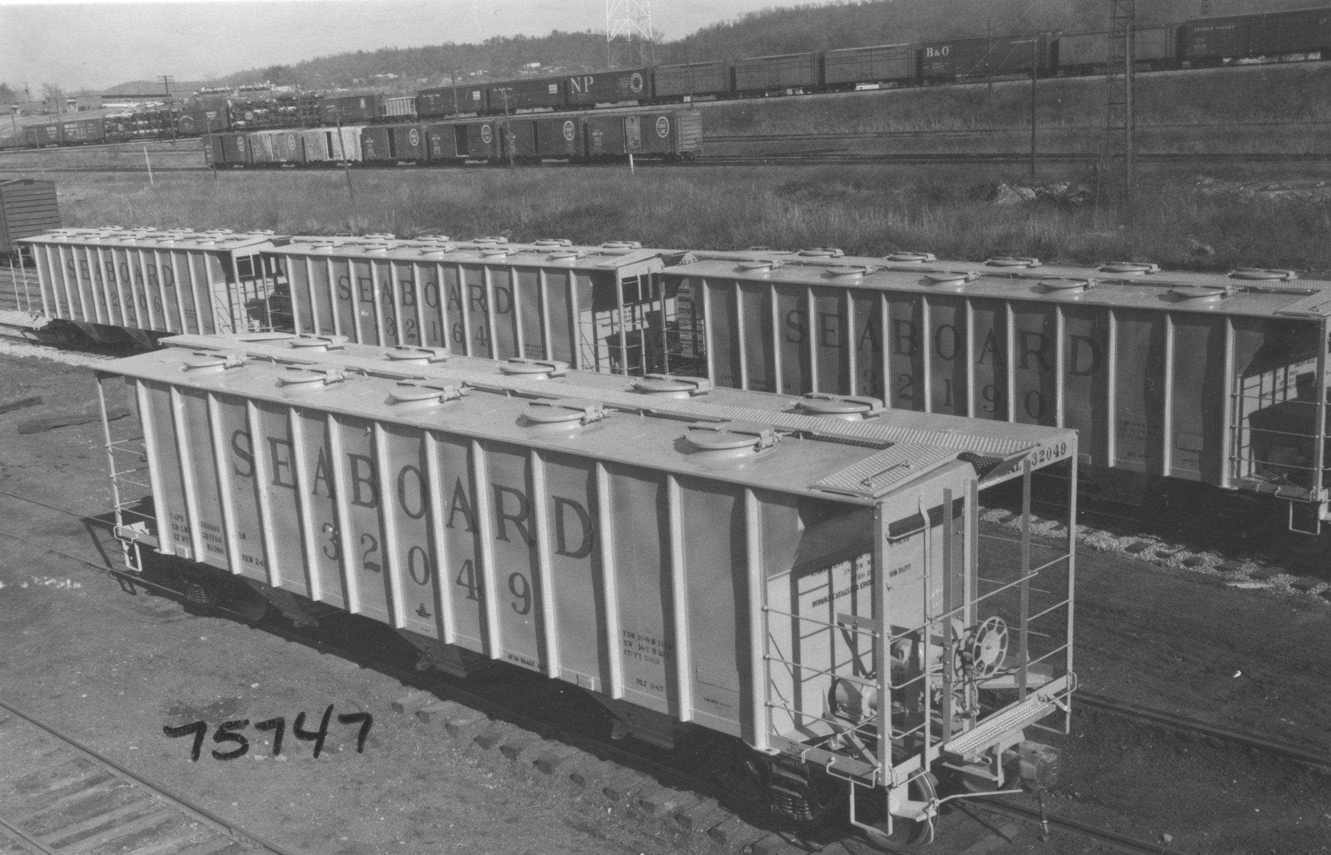These 100-ton, 3-bay covered hopper cars were built by PS (Lot 9177) in 2-3/1967. They featured 2929 ft3 capacity and 10 round roof hatches. They were classed as part of the LS-14 class along with other cars.