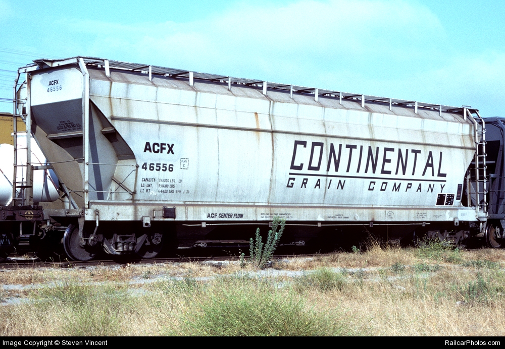 These 3-bay, 100-ton, Center Flow covered hoppers were built by AC&F in 6/1966. They featured 4650 ft3 capacity.