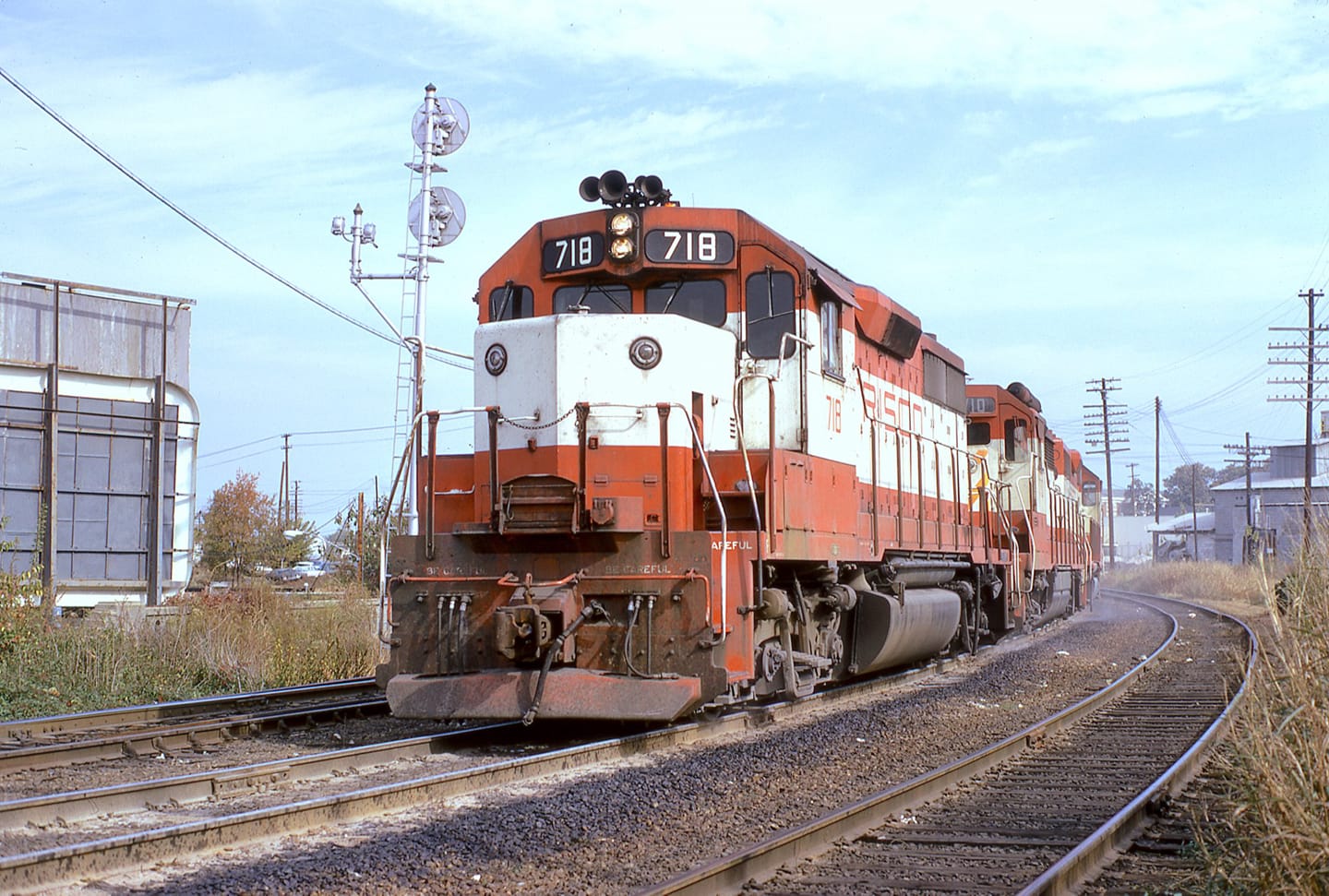 This loco was built in 4/1965 with EMD serial number 30057. She was built as a freight engine. She featured a sealed beam headlight between her number boards and on her rear.