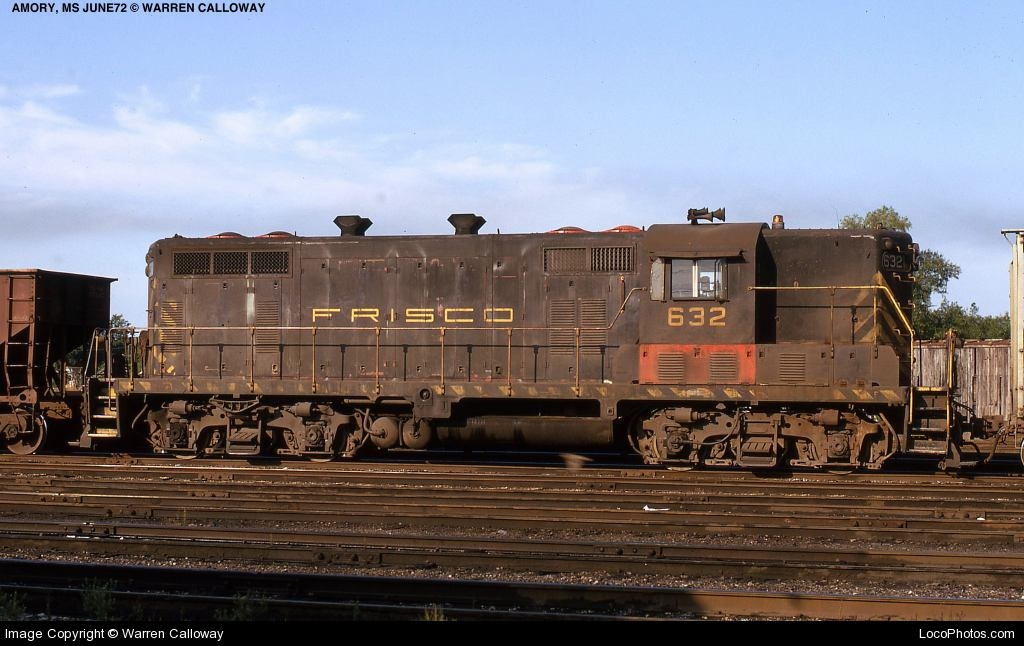 This loco was built in 2/1952 with EMD serial number 15860. She was built as a passenger engine equipped with a steam generator. She featured a sealed beam headlight in her front and rear ends. As with all Frisco GP7's, she did not feature dynamic brakes.