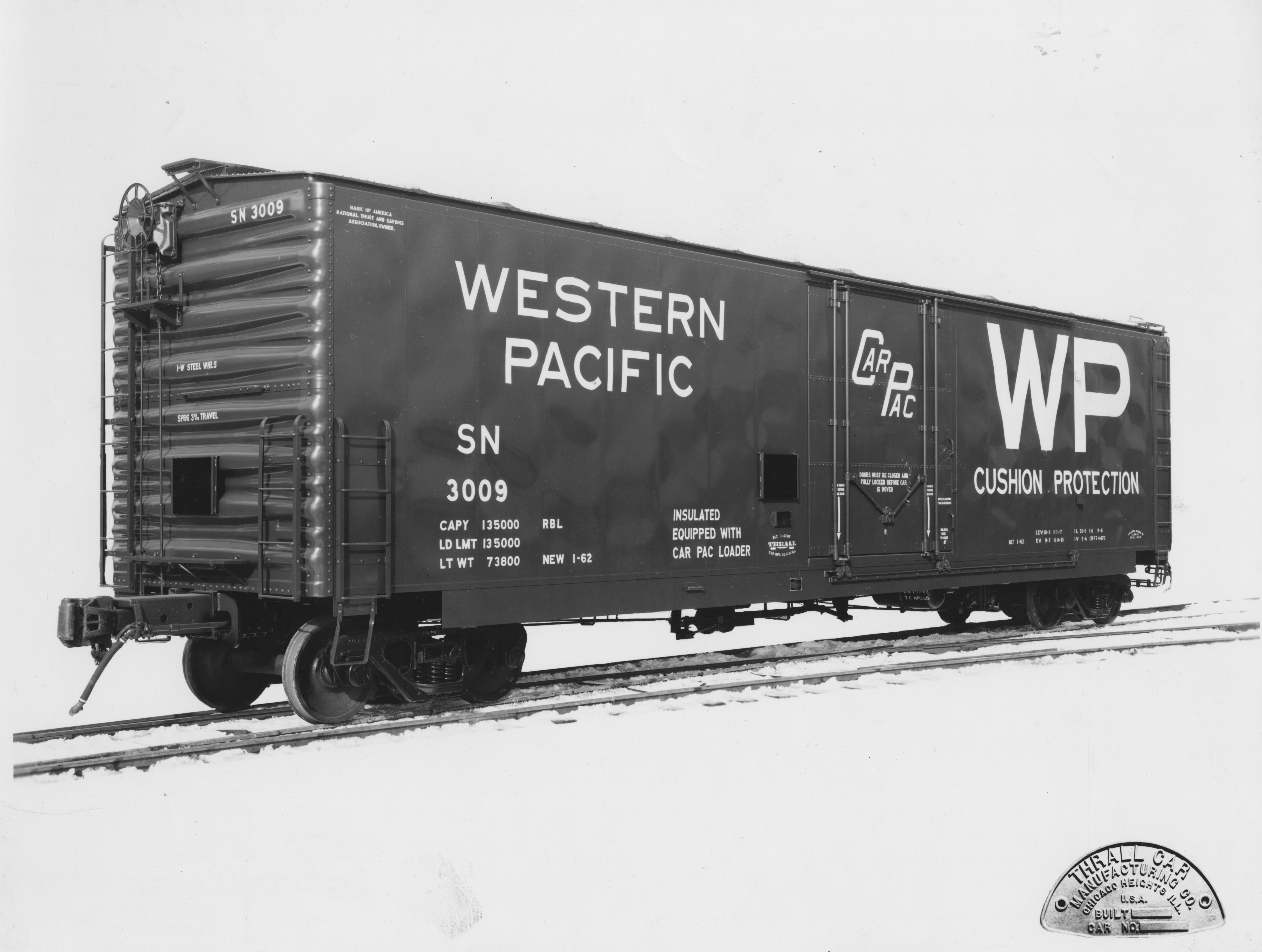 These 50'-6", 65-ton insulated box cars were built by Thrall in 1/1962. They featured cushioned underframes, Car-Pac loaders, plug doors and 4477 ft3 capactiy.