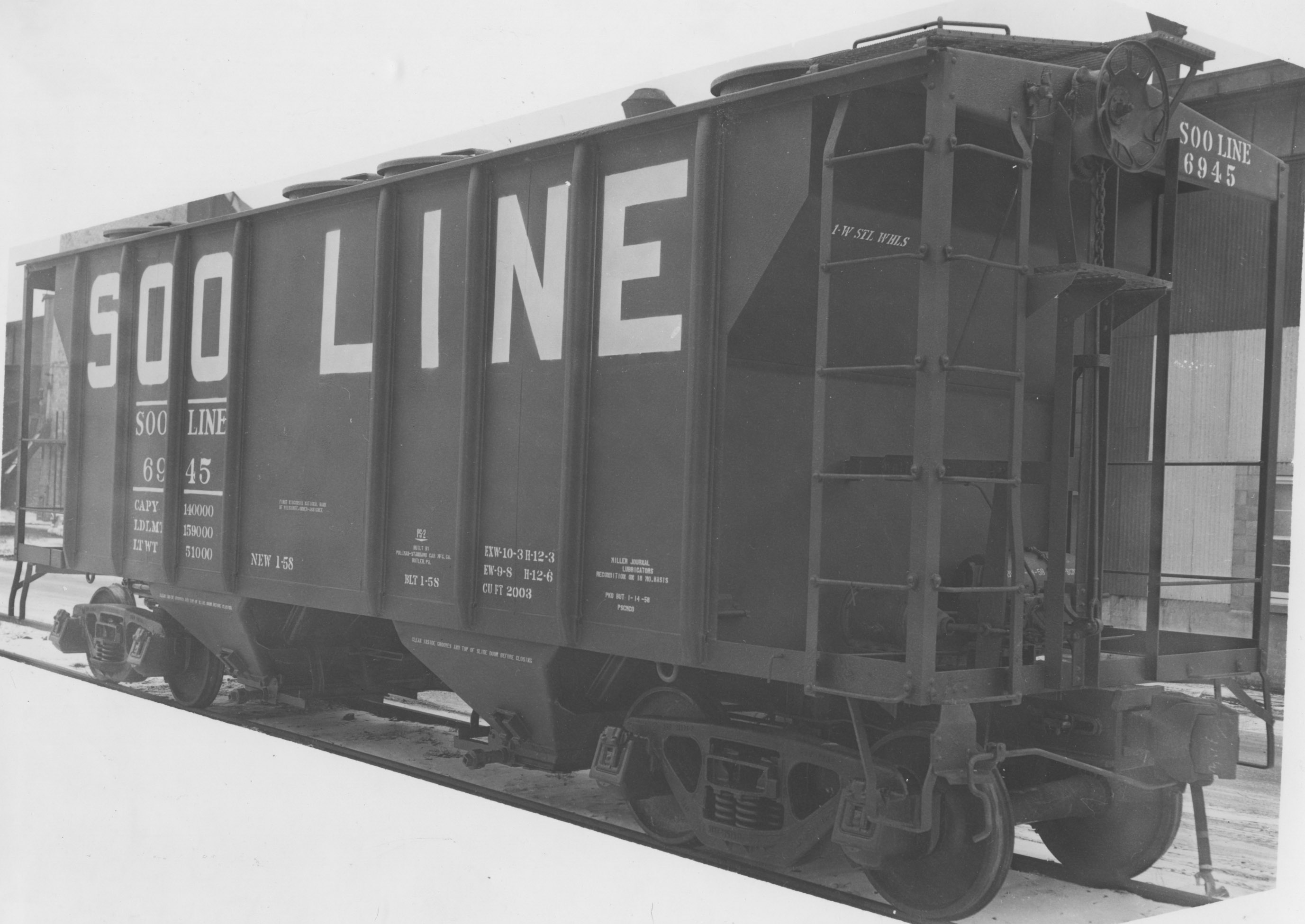 These 2-bay, 70-ton covered hopper cars were built by PS (Lot 8419) in 1/1958 as PS-2s. They featured 2003 ft3 capacity.