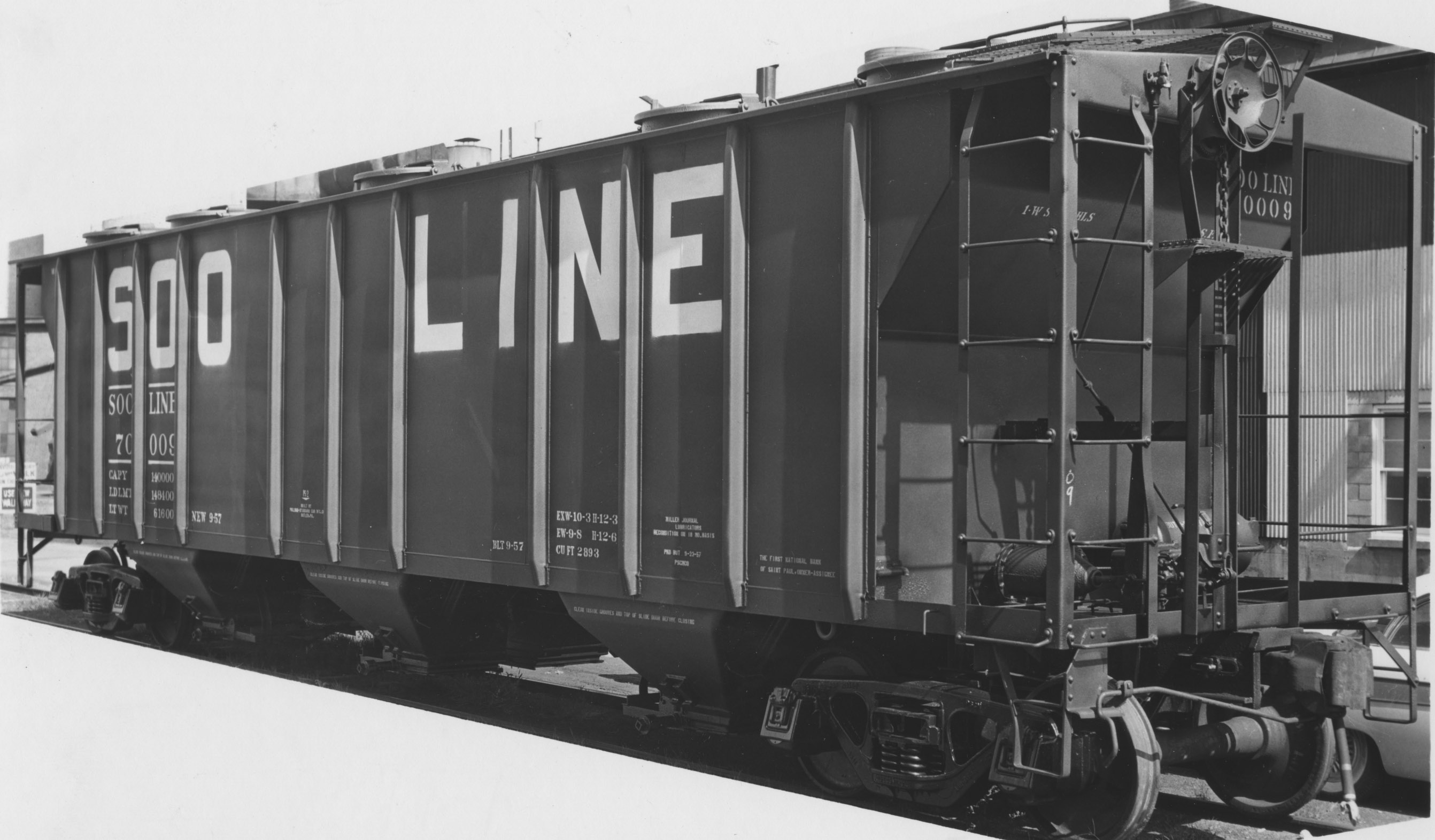 These 3-bay, 70-ton covered hopper cars were built by PS (Lot 8379F) in 9/1957 as PS-2s. They featured 2893 ft3 capacity.