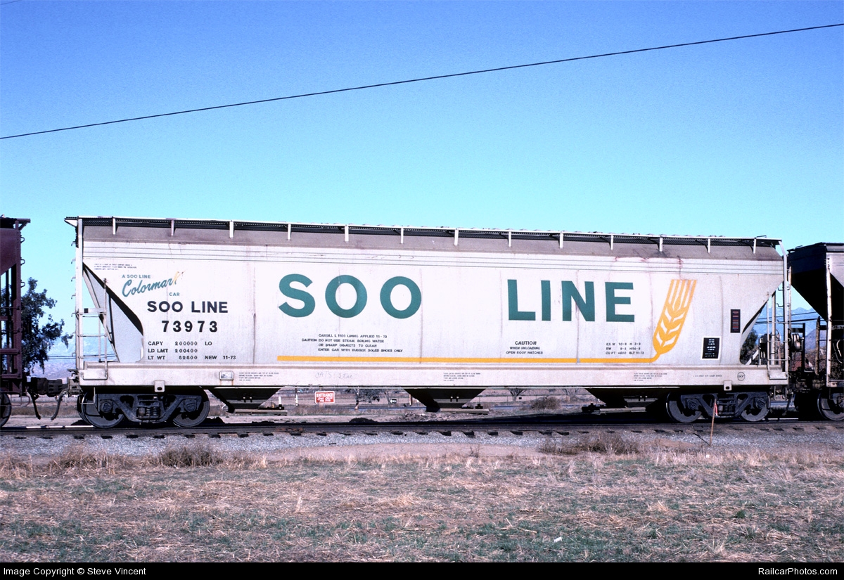 These 3-bay, 100-ton covered hoppers were built by AC&F in 11/1973 as Center Flow cars. They featured 4600 ft3 capacity.