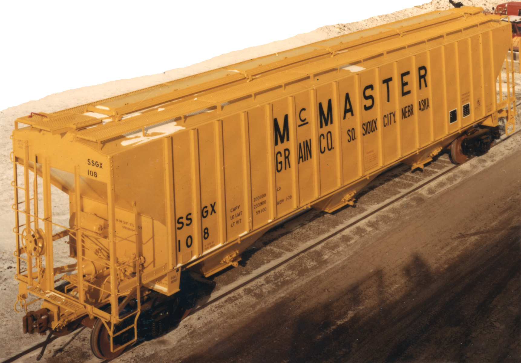 These 3-bay, 100-ton, covered hopper cars were built by PS (Lot 1006A) in 1/1979. They featured 4750 ft3 capacity.