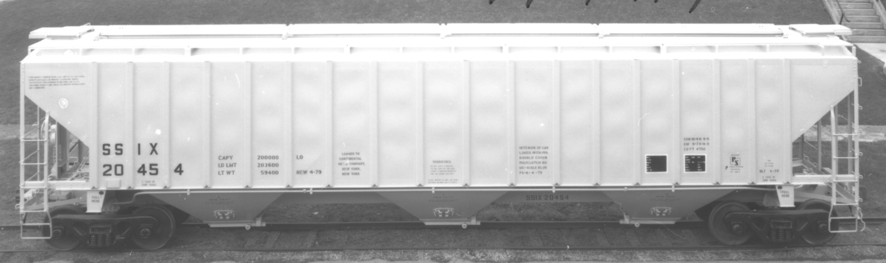 These 3-bay, 100-ton, covered hopper cars were built by PS (Lot 1008F) in 4/1979. They featured 4750 ft3 capacity.