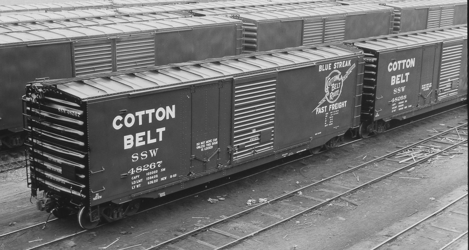 In late 1973-early 1974, Pine Bluff shops re-numbered 300 of these cars as SSW 10000-10299. At least a few had their plug door replaced with a second sliding door.