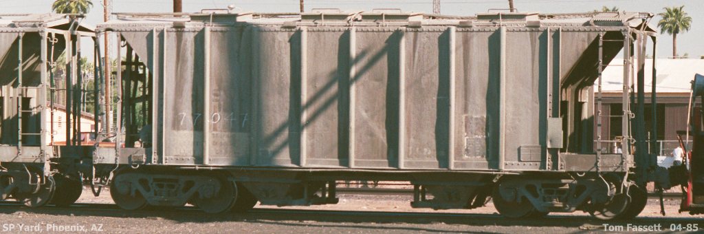 These 70-ton, 2-bay covered hoppers were built by AC&F in 1949. They featured a 1958 ft3 capacity and eight square hatches.