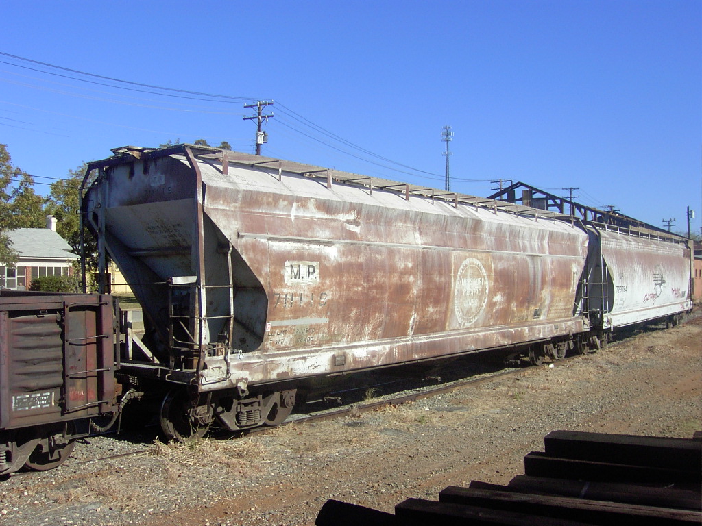 These 3-bay, 100 ton, covered hopper cars were built by ACFI in 1971 as Center Flo hoppers. They featured 4460 ft3 capacity.
