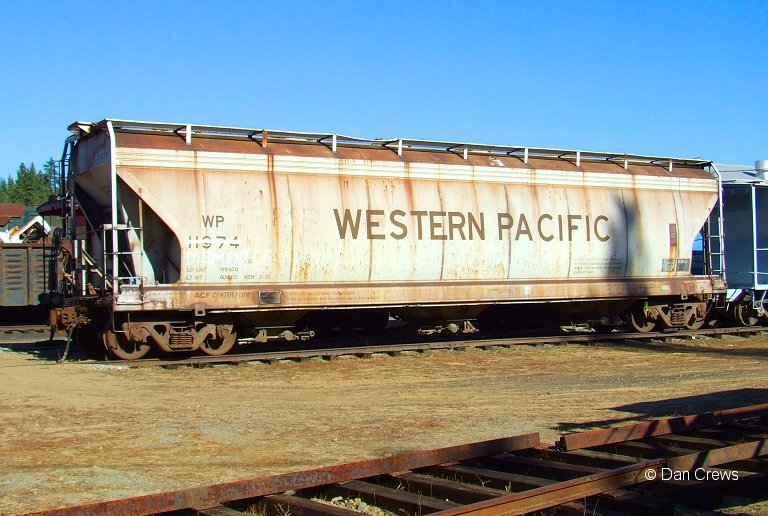 These 3-bay, 100 ton covered hopper cars were built by AC&F in 3/1975. They featured three round roof hatches, gravity-pneumatic discharge outlets, later top chord stiffeners and 4600 ft3 capacity.