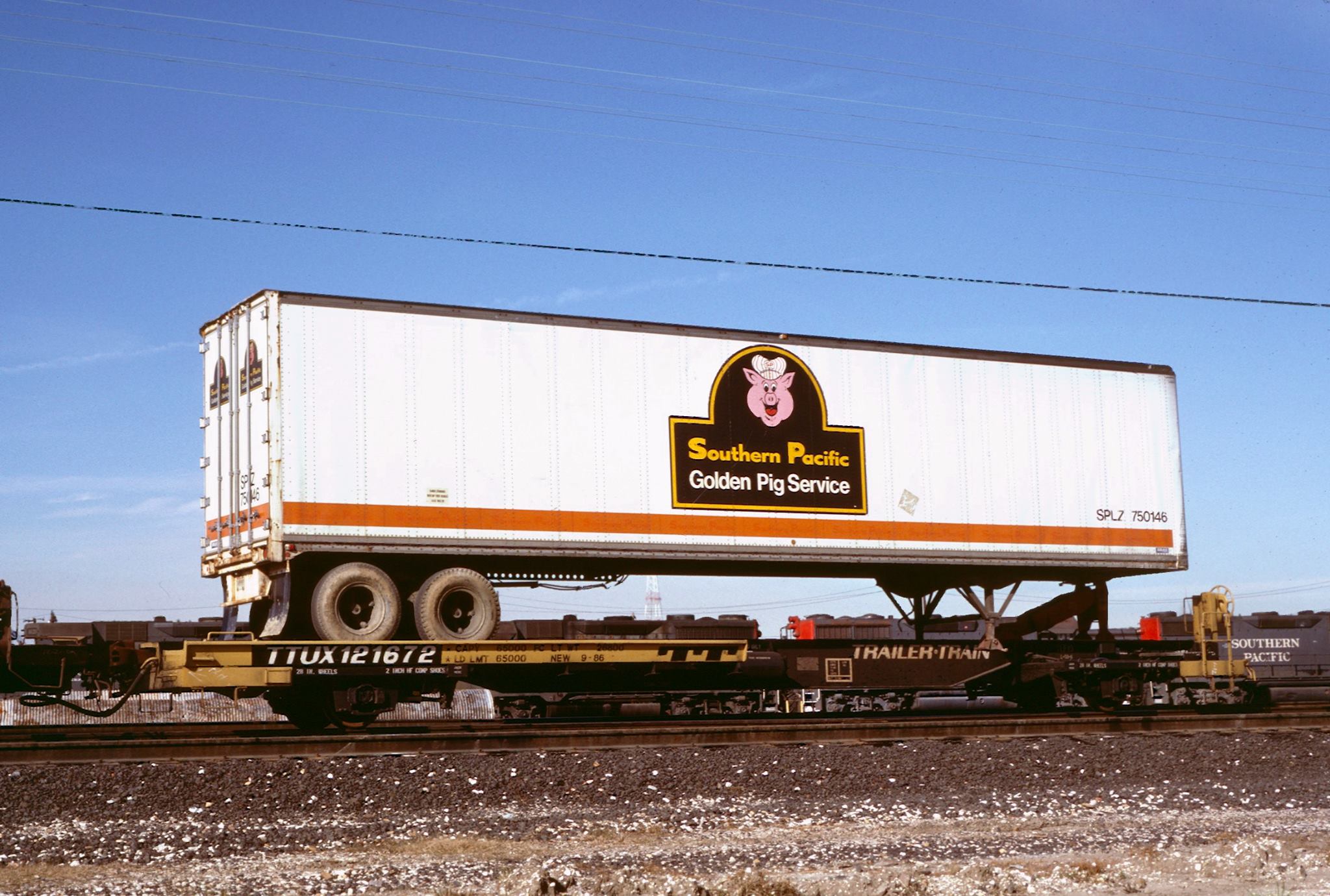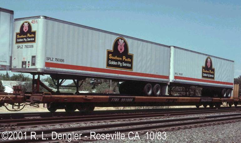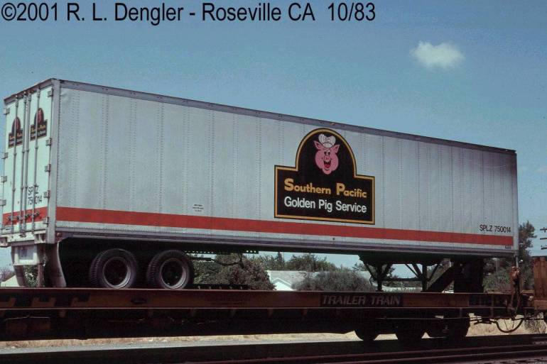 These 45'x96" TOFC trailers were built by Brae in 12/1982 and featured the SP's Golden Pig Service logo.