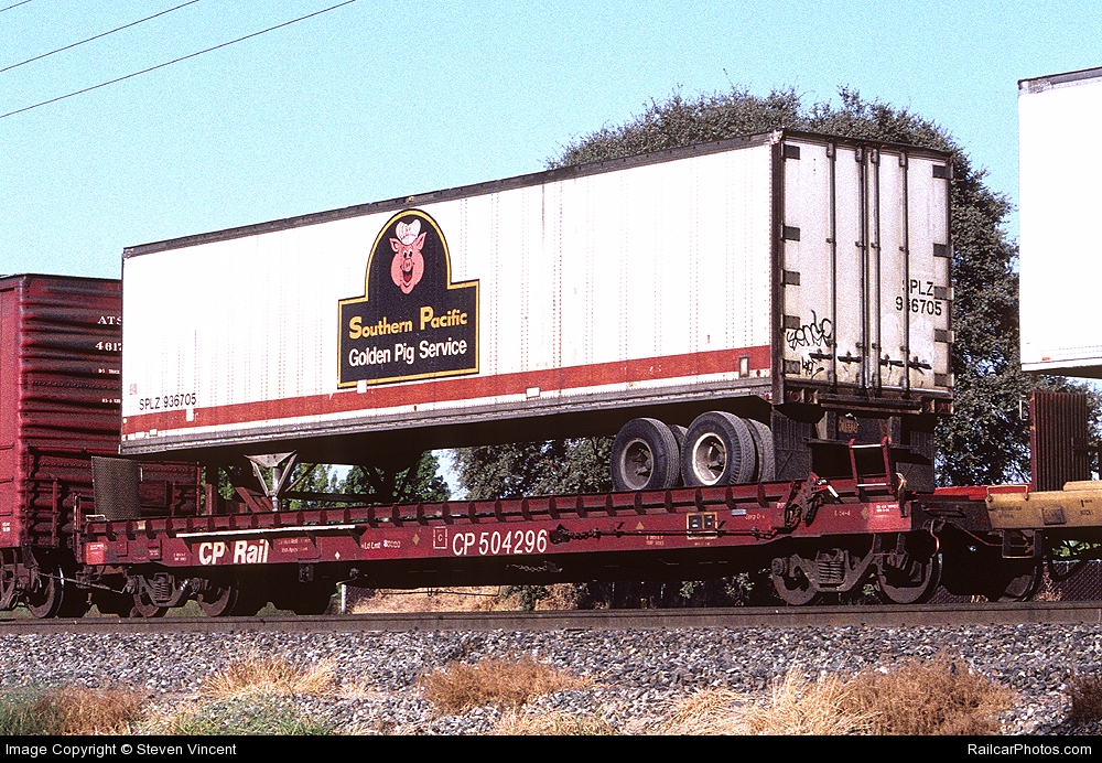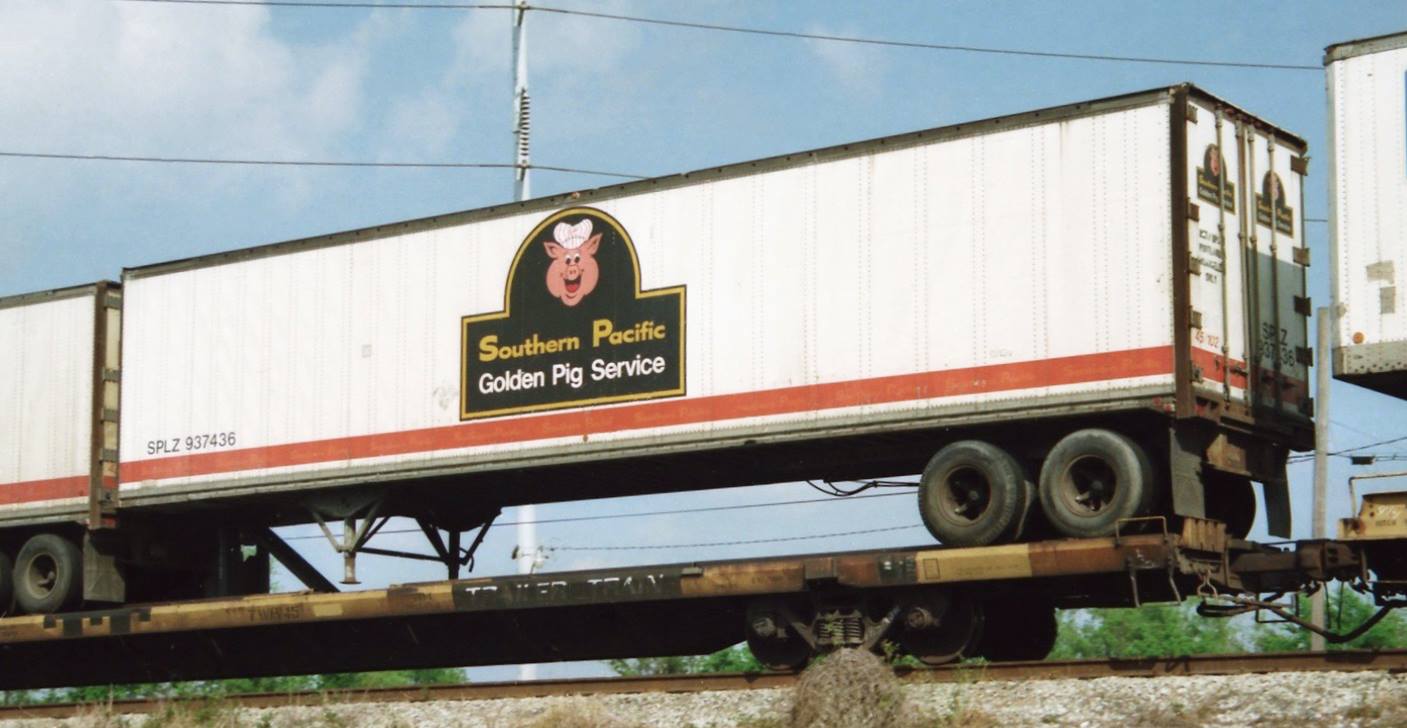 These 45'x102" TOFC trailers were built by Brae in 3-4/1985 and featured the SP's Golden Pig Service logo and were leased from TransAmerica.